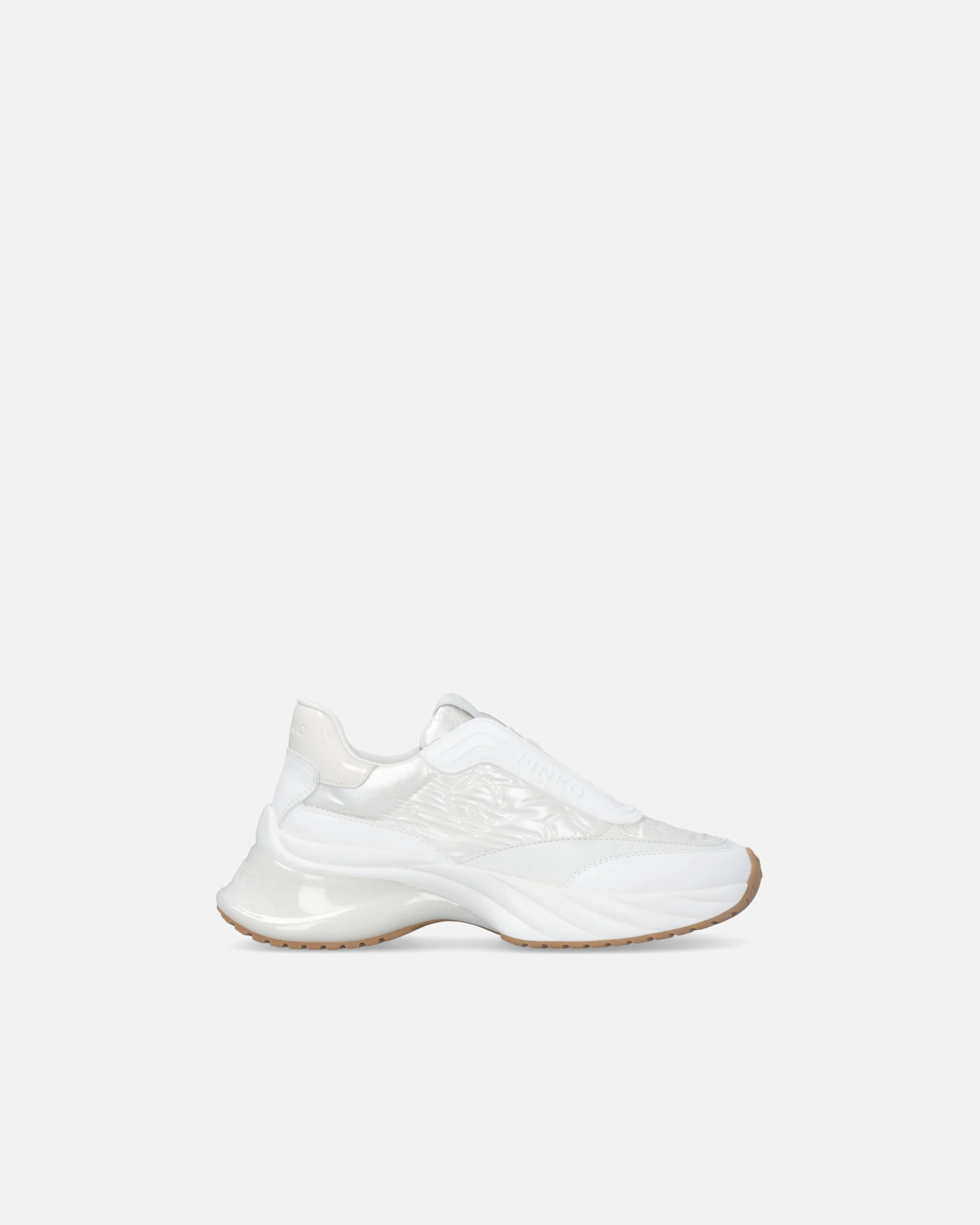 ARIEL 19 - SNEAKERS − SS0097T043DY7 Ariel sneakers made from a mixture of leather, rubber inserts and shiny fabric with 7cm-high rubber sole. The PINKO logo lettering adorns the tongue, insole, heel and upper, while a topstitched Love Birds logo monogram motif appears on the sides of the shoes. The innovative, eyeletless lace fastening system and elegant, elongated shape make these running-style sneakers perfect for casual daytime looks, from mornings at the office to the various engagements throughout the day. COMPOSITION Lining: POLYESTER 80% CALFSKIN LEATHER 20% CALF LEATHER 20% - Upper: CALF LEATHER 55% CALFSKIN LEATHER 55% POLYESTER 33% ELASTODIENE 12% RUBBER 12% - Sole: CALF LEATHER 100% CALFSKIN LEATHER 100% - Sole: ETHYLENE-VINYL ACETATE 45% RUBBER 35% ELASTODIENE 35% POLYURETHANE 20% MEASUREMENTS - Heel height: 7 cm