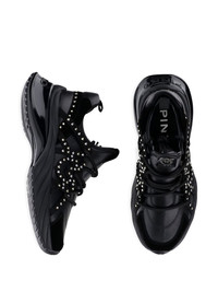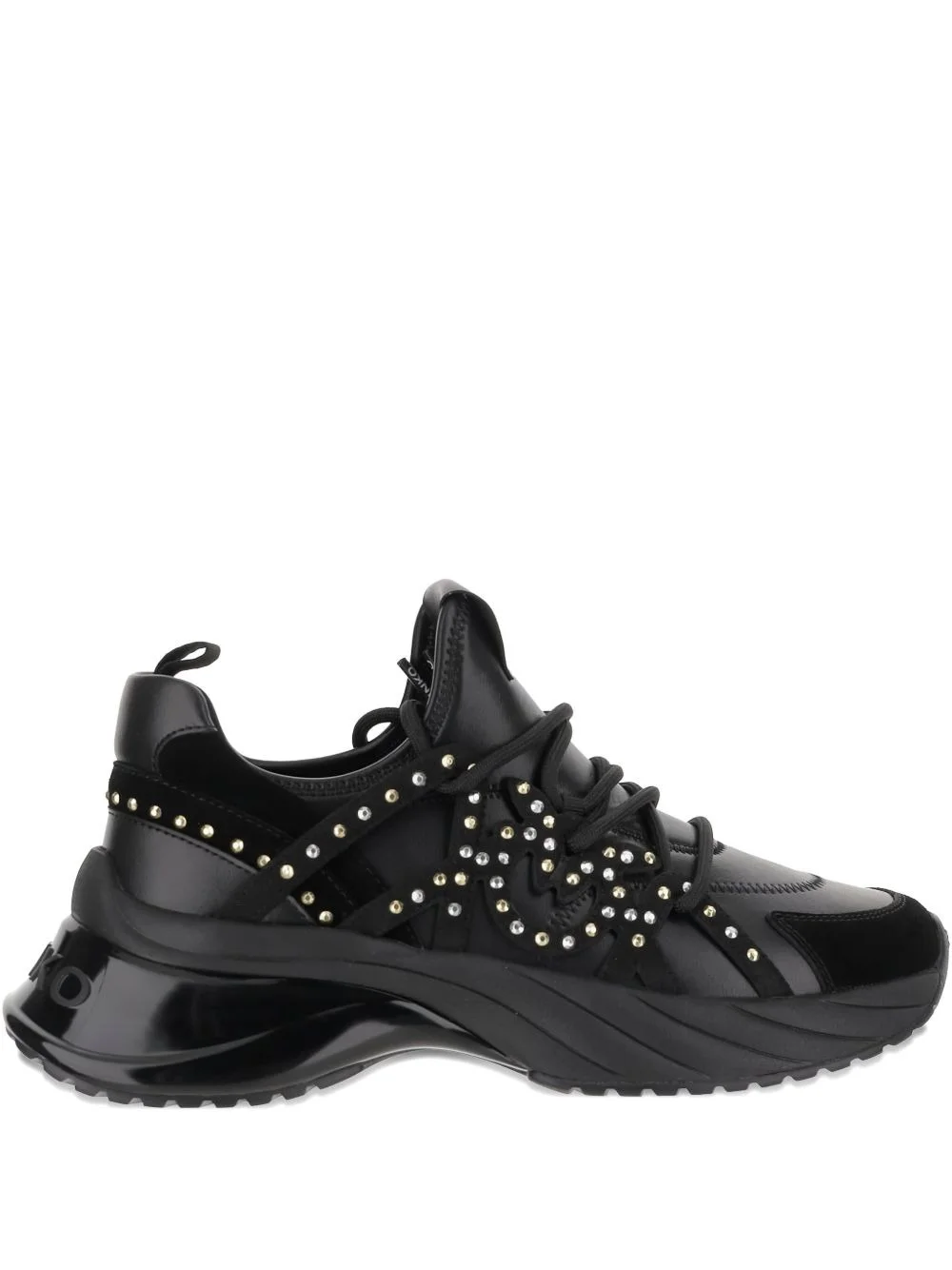 rhinestone-embellished lace-up sneakers Highlights - Black - Leather upper - Rhinestone embellishments - Lace-up front - Rubber sole - Round toe Imported Composition Outer: Nylon 100% Sole: Rubber 100% Lining: Fabric 100%
