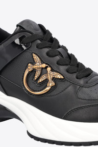 ARIEL 02 − SS0027P025Z99 Daytime sneakers in hammered and smooth leather-effect fabric customised with mirror-effect insert and metallic Love Birds logo on the outer side. These sneakers are an iconic style from the collection, thanks to their moulded running sole—7 cm at its highest—made from rubberised material with slightly glossy TPU spoiler and custom PINKO logo. The fabric lining and leather insole give these women's sneakers—a must-have this season for both casual and more formal looks—the perfect finishing touch. COMPOSITION Lining: POLYESTER 100% - Upper: CALF LEATHER 55% CALFSKIN LEATHER 55% POLYURETHANE 45% - Sole: CALF LEATHER 100% CALFSKIN LEATHER 100% - Sole: POLYURETHANE 65% RUBBER 35% ELASTODIENE 35% MEASUREMENTS - Heel height: 7 cm