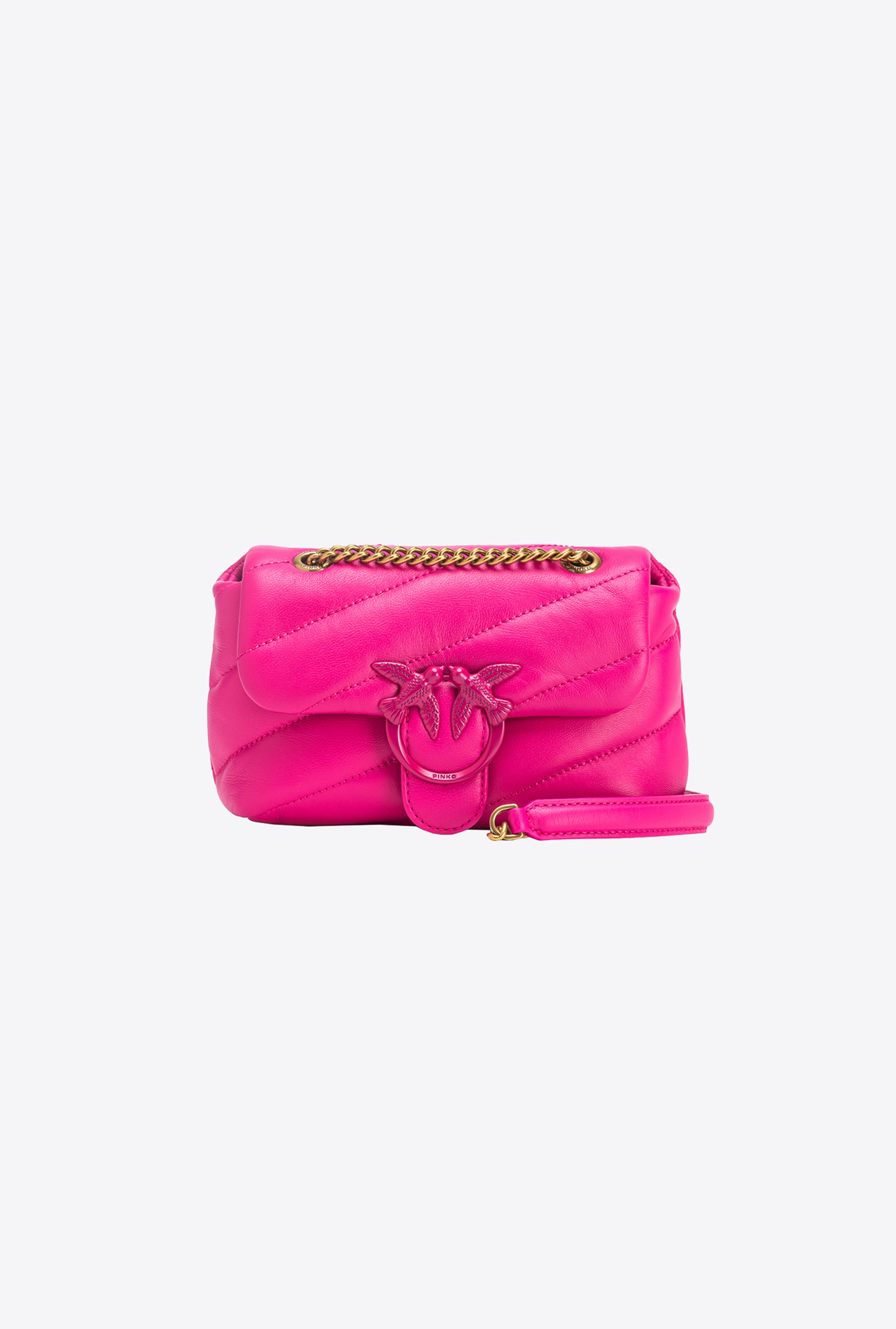 Baby Love Bag Puff in soft nappa leather with diagonal maxi quilting. The fastening is enhanced by the iconic, matching colour-electroplated enamelled metal Love Birds Diamond Cut buckle with matte-effect finish. The accessory boasts a microsuede-lined interior and a zipped slip pocket. The shoulder strap combines the classic round-link chain with practical leather shoulder padding. Activate your PINKO bag: verify the authenticity of your product and access a personalised experience by scanning the Love Birds embroidery on the back of the bag with your smartphone! COMPOSITION Lining: POLYAMMIDE 50% POLYAMIDE 50% POLYURETHANE 50% - Leather: SHEEP LEATHER 100% SHEEPSKIN LEATHER 100% - Accessory: Zinc 100% MEASUREMENTS - Height: 13 cm - Width: 7 cm - Length: 18 cm