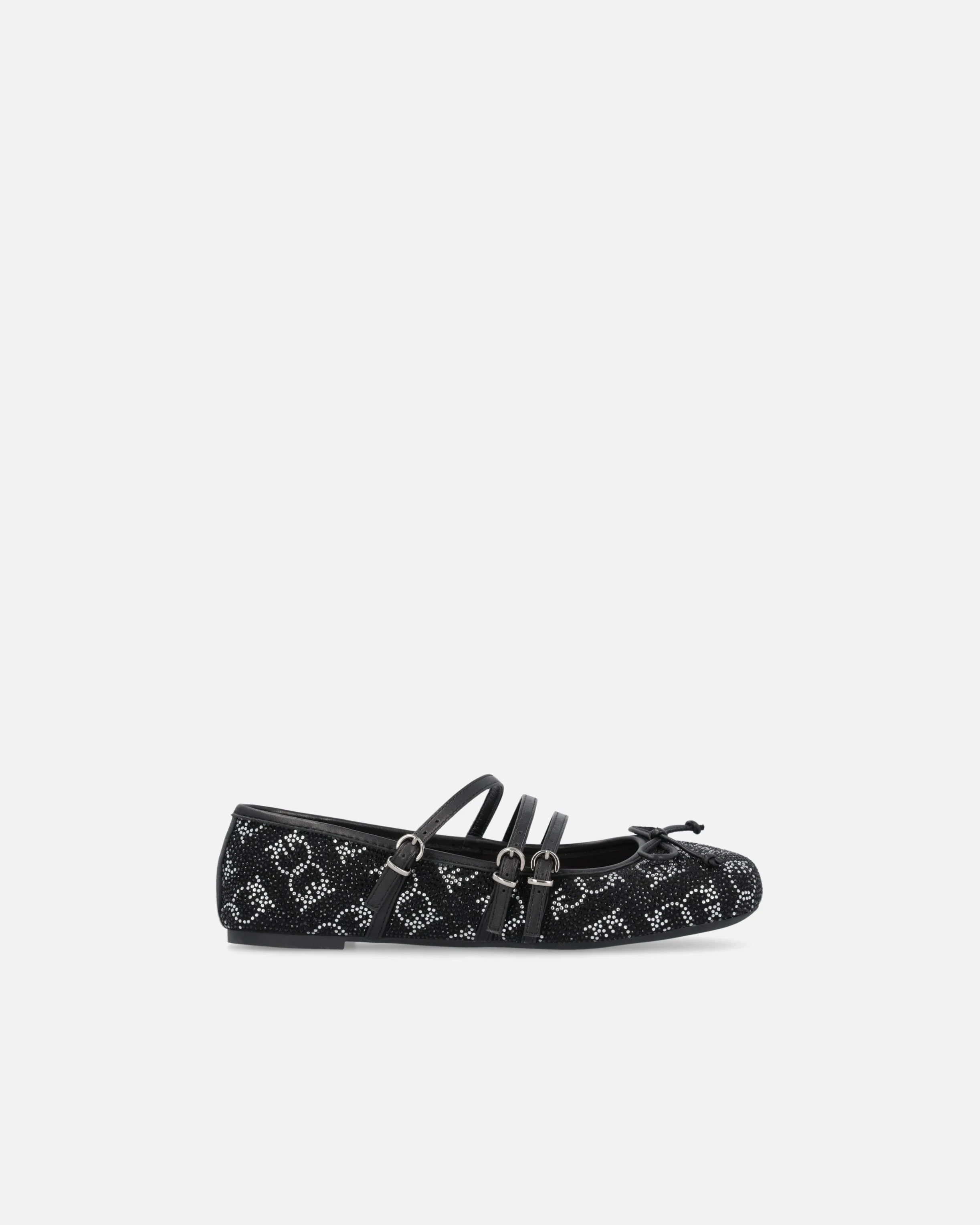 SD0299E025-Z99 Classic ballet flats, characterized by a flat rubber sole, made of microfiber with a Monogram logo pattern made with rhinestone application, which creates a sparkling and precious pattern with every step. The ballet flats are customized with double adjustable strap on the instep and bow that completes the design with a rounded toe. The lining and insole of the ballerinas are made of leather, and the insole has a 4mm padding that guarantees maximum comfort. Strapped flats are the finishing touch to a sophisticated everyday outfit that highlights your personal style. COMPOSITION Lining: GOATSKIN 100% - : POLYESTER 75% GOATSKIN 25% - Sole: GOATSKIN 100% - Sole: ELASTODIENE 100% RUBBER 100% MEASURES W: 0.7 g