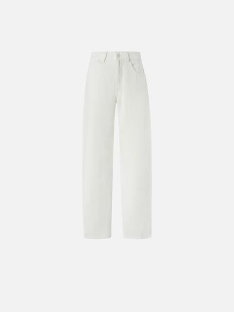 ELOISE EGG − 103180A2HDN55 Five-pocket trousers in fixed cotton bull, free of stretch fibers inside for a more authentic look and feel. The high-waisted trousers are characterized by a balloon-fit line, where the leg is rounded and wide, which narrows towards the bottom of the garment. Zip closure covered by flap and metal button. Balloon-fit jeans are the ideal solution for creating daytime looks that combine comfort and style, with endless possibilities for combinations. COMPOSITION Outside Fabric: COTTON 100% - Lining: COTTON 100%