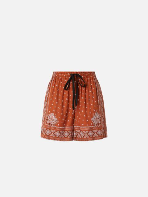 SURPRISE ME SHORTS − 104792A2FLZ1T Women's shorts made of lightweight viscose twill fabric customized with a print that reproduces the classic bandana pattern, for a summery and fun touch. The shorts are characterized by an elastic waist and laces to tighten and a leg with a wide, airy line and perfect for summer. Pair shorts with a blazer and loafers for a daytime look to be worn on sunny days and dream of yourself on vacation. COMPOSITION Outside Fabric: VISCOSE 100% - Lining: VISCOSE 100%