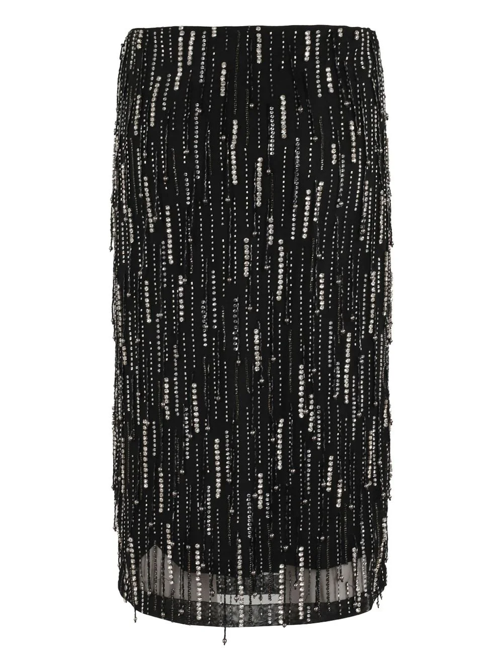 beaded fringe midi skirt Highlights - Black - Beaded embellishment - Fringe detail - Sheer panel - Pencil shape - Straight hem Imported Composition Polyester 100%