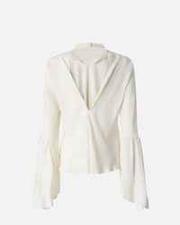 BRATZ BLOUSE − 105625A2S9Z05 Refined silk-blend crepe de Chine blouse with a soft and light hand. The style features long sleeves complemented by a wide insert on the cuffs that adds movement and elegance, and is embellished by a deep V-neck on the back that adds a touch of femininity and contemporaneity to the minimal design. Thanks to its versatility, this women's blouse will accompany you on the most special or formal occasions, for example paired with a sophisticated suit. COMPOSITION Outside Fabric: ACETATE 83% SILK 17%