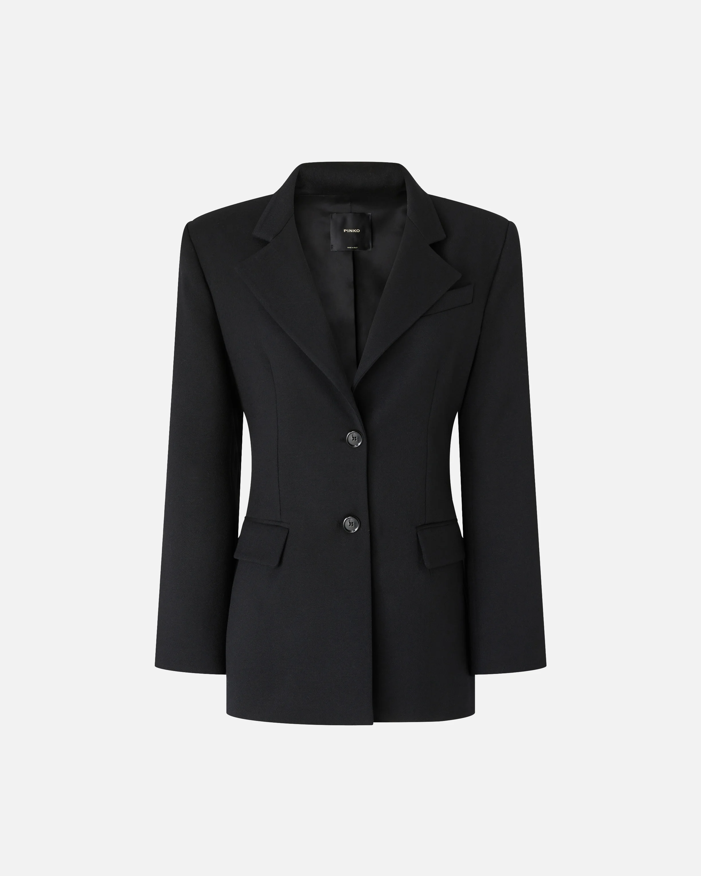 FAUSTA JACKET − 106098A305Z99 Single-breasted fitted-waist jacket in classic-inspired wool-blend canvas with fine metallic thread that creates a very delicate and slightly iridescent pinstripe effect, depending on how the light hits the fabric. The contrast between the front and back parts of this garment makes it stand out: at first glance, the design appears classic but then surprises with original touches like visible seams and an adjustable half-belt detail on the back. Give your office looks a twist with this innovative reimagining, brimming with that signature PINKO style. COMPOSITION Outside Fabric: WOOL 92% Metallic 4% POLYAMMIDE 4% POLYAMIDE 4% - Lining: ACETATE 67% POLYESTER 33%