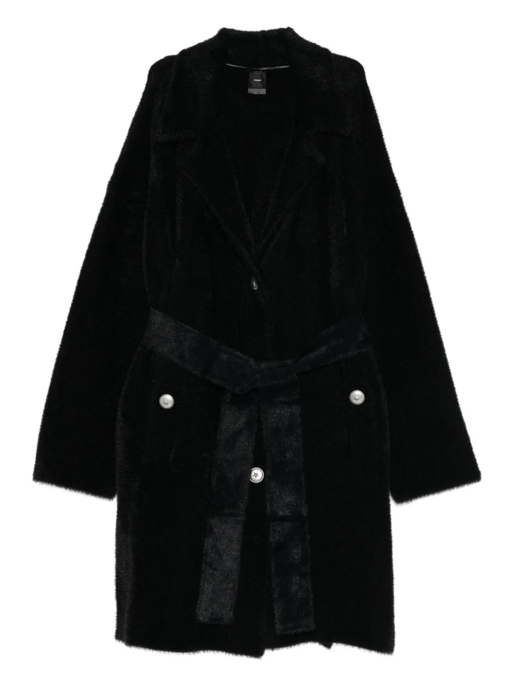 belted buttoned coat Highlights - Black - Button fastening - Belted - Front pockets - Long sleeves - Lapel collar Imported Composition Polyamide 100% SIZE & FIT Model measurements Height 5 ft 9 in(1.76 m) Bust/Chest 31.88 in(81 cm) Hips 35.43 in(90 cm) Waist 24.8 in(63 cm) Washing instructions Read Manufacturer Guidelines