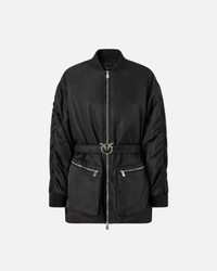 BACON BOMBER − 105340A2OLZ99 Technical satin jacket with long dropped-shoulder sleeves and utility-style maxi-pockets with zip on the front. The model features typical bomber details, such as the classic rib-knit collar and cuffs, but also flaunts more original accents, such as the elongated silhouette and gathered sleeves. Detachable waist belt embellished with the iconic Love Birds Diamond Cut buckle. Two-way zip fastening on the front. For extra comfort when worn, this bomber jacket is lined with contrasting fabric. COMPOSITION Outside Fabric: POLYAMMIDE 100% POLYAMIDE 100% - Accessory Yarn: POLYESTER 98% ELASTANE 2% - Lining: POLYESTER 100% - Padding: POLYESTER 100%