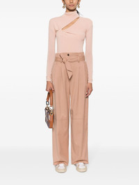belted flannel trousers Highlights - Blush beige - Wool blend - High-waisted - Belted waist - Belt loops - Button fly fastening - Two side welt pockets - Two rear patch pockets - Wide leg - Straight hem Made in Italy Composition Outer: Wool 55%, Polyester 28%, Viscose 15%, Elastane 2% Lining: Acetate 68%, Polyester 32% SIZE & FIT Model measurements Height 5 ft 10 in(1.77 m) Bust/Chest 31.1 in(79 cm) Hips 34.64 in(88 cm) Waist 24.8 in(63 cm) FittingInformation Designed with a wide-leg cut, these trousers allow for a close fit at the waist and offer a loose and roomy fit over the leg The tie fastening gives an adaptable and personalised fit Made from a midweight stretch fabric, this piece offers elasticity and flexibility when worn This piece fits true to size – take your usual size