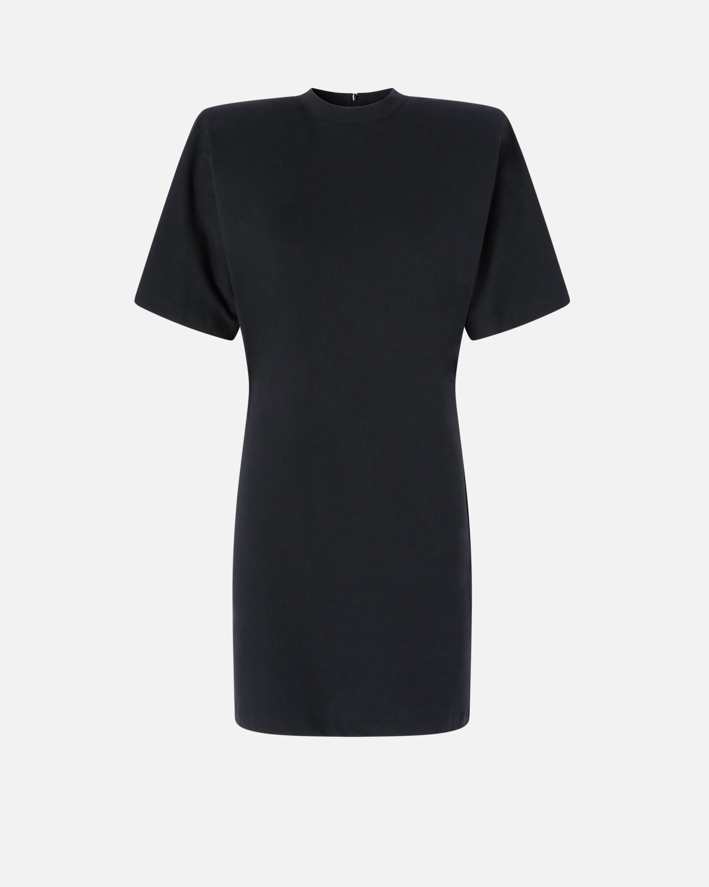 GRADY DRESS − 105220A2M2Z99 Short t-shirt dress in structured and compact jersey, made from a traceable and certified supply chain with 100% organic cotton. This mini dress is characterized by shoulders with a padded insert, which creates an A-line volume, emphasized by the belt with adjustable buckle on the back that allows you to tighten the volume at the waist. Such an easy-to-wear garment, this short dress is essential for a daytime outfit that accompanies you in your commitments with discreet elegance. COMPOSITION Outside Fabric: COTTON 100%