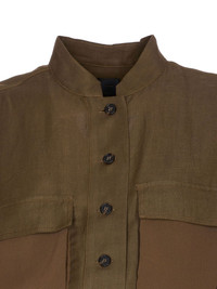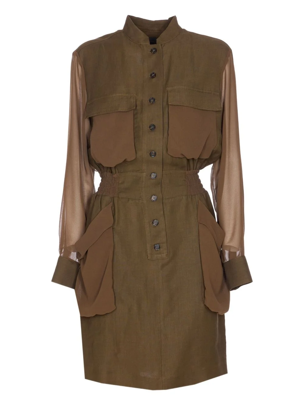 Benvenuto dress Highlights - Olive green - Front button fastening - Elasticated waistband - Two chest flap pockets - Two side patch pockets Made in Italy Composition Viscose 73%, Linen/Flax 27% SIZE & FIT FittingInformation Designed for a slim fit that sits just away from the body offering a close yet comfortable fit The adjustable drawstring means that you can adjust this piece’s fit to suit your comfort and preference Made from a lightweight non-stretch fabric