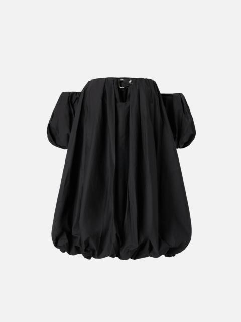 BERT DRESS − 105211A2LDRA1 Women's short sleeveless dress with a loose fit in light pure cotton poplin characterized by a balloon volume, which stands out for its wide construction and light pleats. The dress is characterized by a straight strapless off-shoulder neckline, which leaves the decollete and shoulders bare, finished with a small teardrop opening with button and strap. The neckline is complete with elastic and internal silicone insert along the profile, so as not to slip it and ensure a perfect fit every time. The mini dress is completed by balloon half sleeves, removable thanks to small buttons: you can choose whether to wear the dress with or without sleeves, depending on your style and the occasion in which you decide to show it off. The large volume of this cotton dress is gathered at the bottom of the garment with an elastic insert, which thus creates the characteristic balloon effect. The balloon mini dress is perfect for a daytime ceremony, but also for a special date together with a pair of shiny ballet flats. COMPOSITION 1° Outside Fabric: COTTON 100% - 2° Outside Fabric: POLYESTER 100% - Lining: COTTON 100%