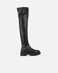 SD0445E028-Z99 Over-the-knee-length leather boots with 58 cm-high leg shaft and 5.5 cm-high rubber sole. This model in stretchy nappa leather stands out for its understated yet bold design enhanced by metal details that emphasise its character. The side zip makes them easy to put on, while the adjustable straps with buckle, one of which features a metal loop bearing the Love Birds logo, lend a sophisticated rock'n'roll edge. We all know that details are what make the difference: choose this pair to give your casual looks an edgy touch. COMPOSITION Lining: CALF LEATHER 100% CALFSKIN LEATHER 100% - Upper: POLYURETHANE 74% CALF LEATHER 26% CALFSKIN LEATHER 26% - Sole: CALF LEATHER 100% CALFSKIN LEATHER 100% - Sole: ELASTODIENE 100% RUBBER 100% MEASURES W: 2.46 g