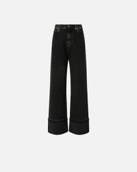 WANDA WIDE LEG TURN-UP − 105541A2RRPJ4 Women's five-pocket jeans with a wide, straight leg and a fixed turn-up hem. This piece is made from black lyocell and cotton denim for a more fluid hand and is treated with different washing techniques to achieve the final shade. The detachable belt loop with Love Birds logo adds pure PINKO style to the design. Play around with pairings and wear these jeans low on the waist with a dropped crotch for a more masculine look, or pair them with more feminine pieces for a style that is all about contrast. Belt loops and front concealed zip and button fastening. This model is a little wider than the usual size. COMPOSITION Outside Fabric: COTTON 82% LYOCELL 18% - Lining: POLYESTER 65% COTTON 35%