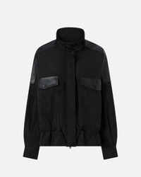 MILLEFOGLIE BLOUSON − 106906A3AKZ99 Black jacket with a structured design with a high collar and front button closure. Equipped with front pockets with flap and buttons, and drawstring waist for a customizable fit. The mix of technical materials and leather details makes the garment ideal for urban and contemporary looks. Perfect over cargo trousers and combat boots for an outfit with a strong character. COMPOSITION 1° Outside Fabric: POLYAMMIDE 100% POLYAMIDE 100% - 2° Outside Fabric: POLYESTER 100% - coating: POLYURETHANE 100% - Lining: POLYESTER 100% - Padding: POLYESTER 100%