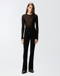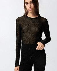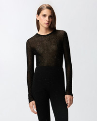 PICO KNITWEAR − 105398A2PMZ99 Crew-neck sweater made from a semi-sheer wool blend: a lightweight and soft yarn that is almost impalpable, which helps create a sensual and striking look. The design is embellished with micro-sequins inserted in the thread and manages to be shiny and understated and extremely comfortable to wear. The piece has undergone finishing tests to minimise the possible formation of pilling, ensuring greater fabric softness and durability. The final touch is given by the label with PINKO lettering logo on the back. COMPOSITION Outer Yarn: WOOL 98% POLYESTER 2%