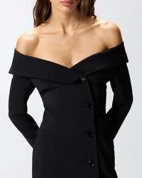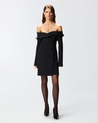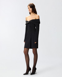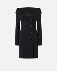 ROSEMARIE DRESS − 106139A304Z99 Slim-fitting, long-sleeved mini dress in figure-flattering stretch crepe fabric. The off-centre button placket, buttoned cuffs and side welt pockets are a clear nod to the classic blazer's design, while the wide neckline that leaves the shoulders uncovered gives the item a decidedly feminine touch: the end result is structured yet classy in style, like only PINKO knows how. COMPOSITION Outside Fabric: POLYESTER 98% ELASTANE 2% - Lining: ACETATE 67% POLYESTER 33%