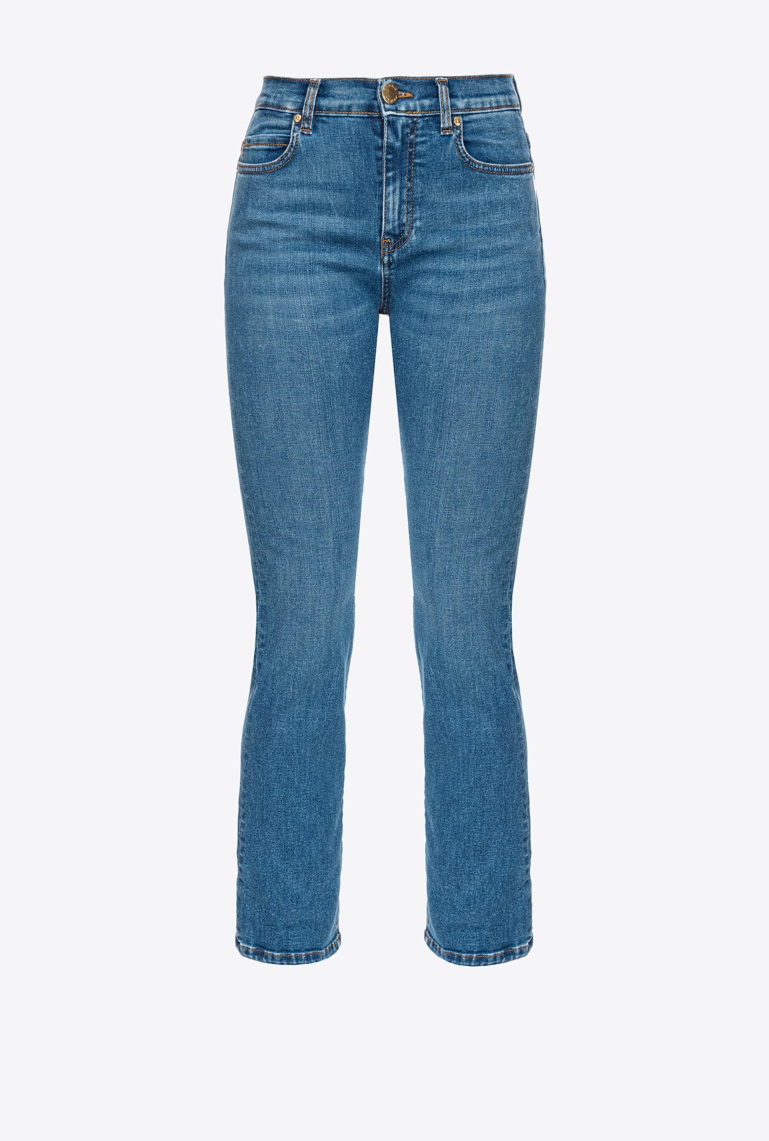 Five-pocket bootcut jeans in boom stretch denim, with vintage medium wash. Regular waist, slim legs that flare out slightly at the bottom and ankle length. Metal zip and tack-button fastening. COMPOSITION 1° Outside Fabric: COTTON 82% POLYESTER 16% ELASTANE 2% - Lining: COTTON 65% POLYESTER 35%