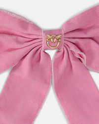 106747A38V-O21 Delicate bow-shaped hair clip, perfect for giving your hairstyles a touch of carefree feminine charm. This accessory, made from washed pure cotton fabric, is customised with iconic PINKO details, including a small metal plaque with the Love Birds logo on the knot at the front, and a label featuring the brand's logo lettering at the back. COMPOSITION Outside Fabric: COTTON 100% MEASURES H: 0.01 cm W: 20.0 cm L: 16.0 cm