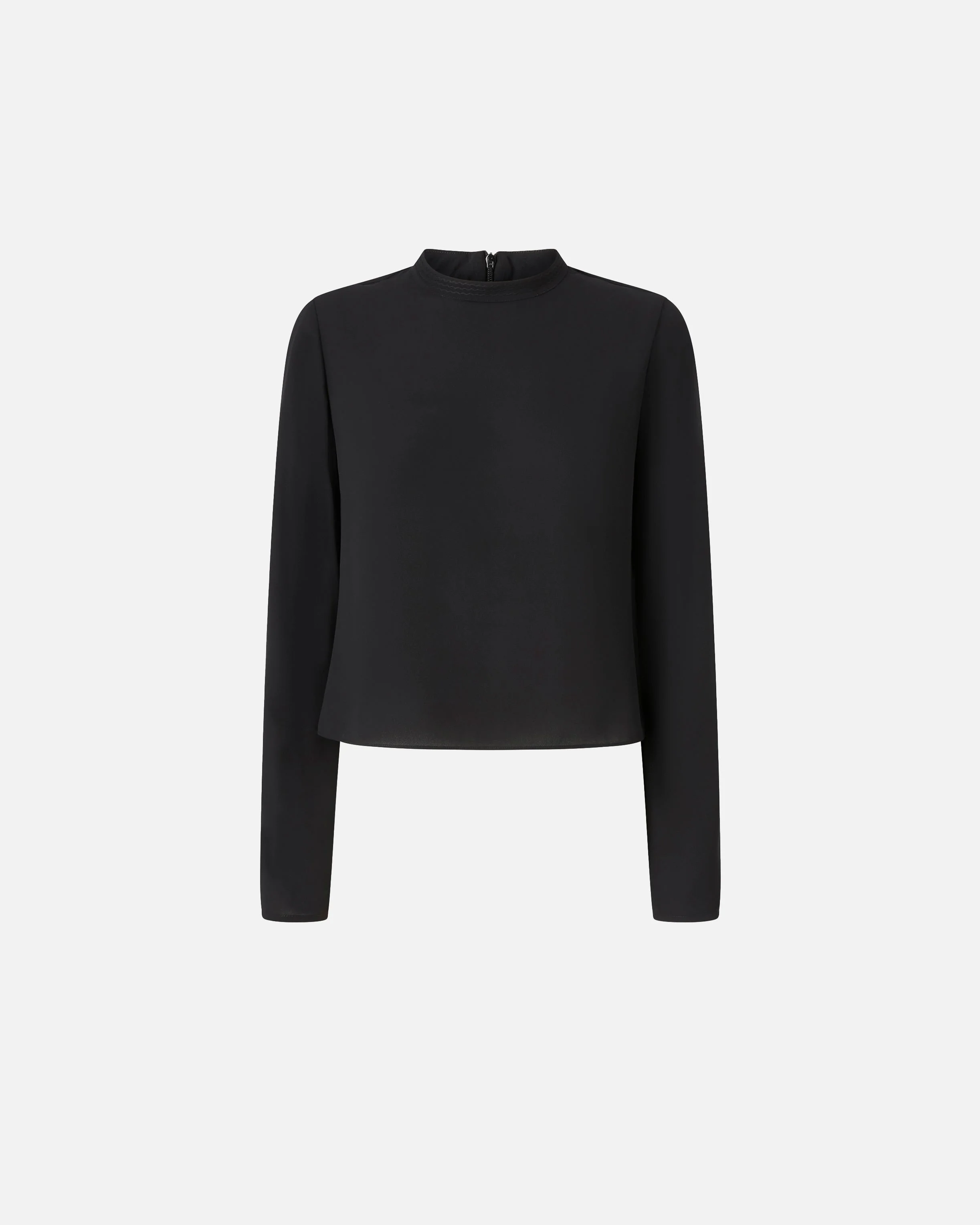 105677A2QW-Z99 Blouse with long sleeves finished with buttons, the first of which is decorated with a star. The very fine, fluid and light technical crepe fabric is particularly suitable for everyday wear. The collar is slightly raised and is embellished with a glossy tonal embroidered ribbon. Invisible zip fastening on the back. COMPOSITION Outside Fabric: POLYESTER 100% - : POLYESTER 100% MEASURES W: 0.26 g