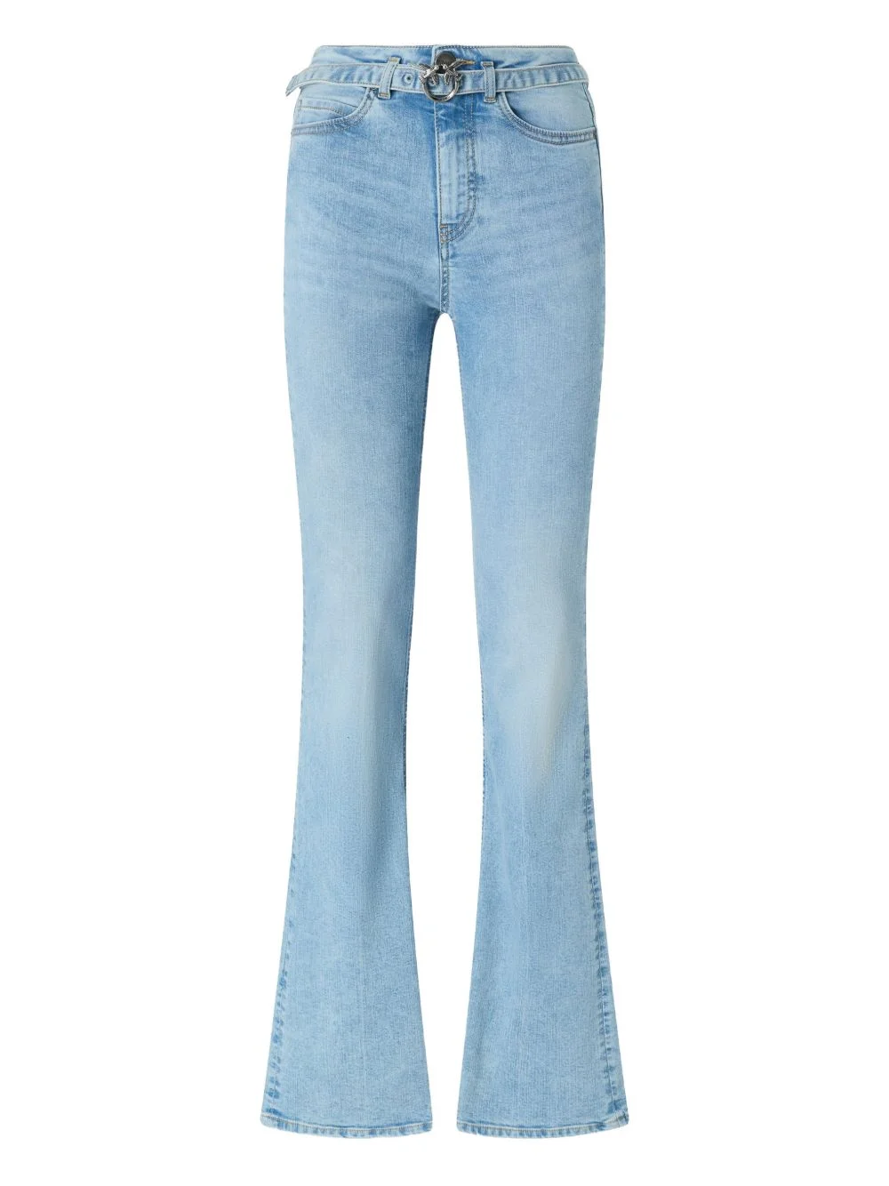 buckle-embellished flared jeans Highlights - Light wash - Buckle embellishment - Belt - Five pockets - Tonal stitching - Rear logo detail Imported Composition Outer: Cotton 71%, Polyester 18%, Viscose 10% Washing instructions Read Manufacturer Guidelines