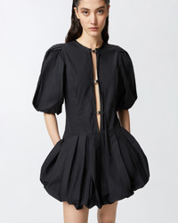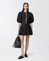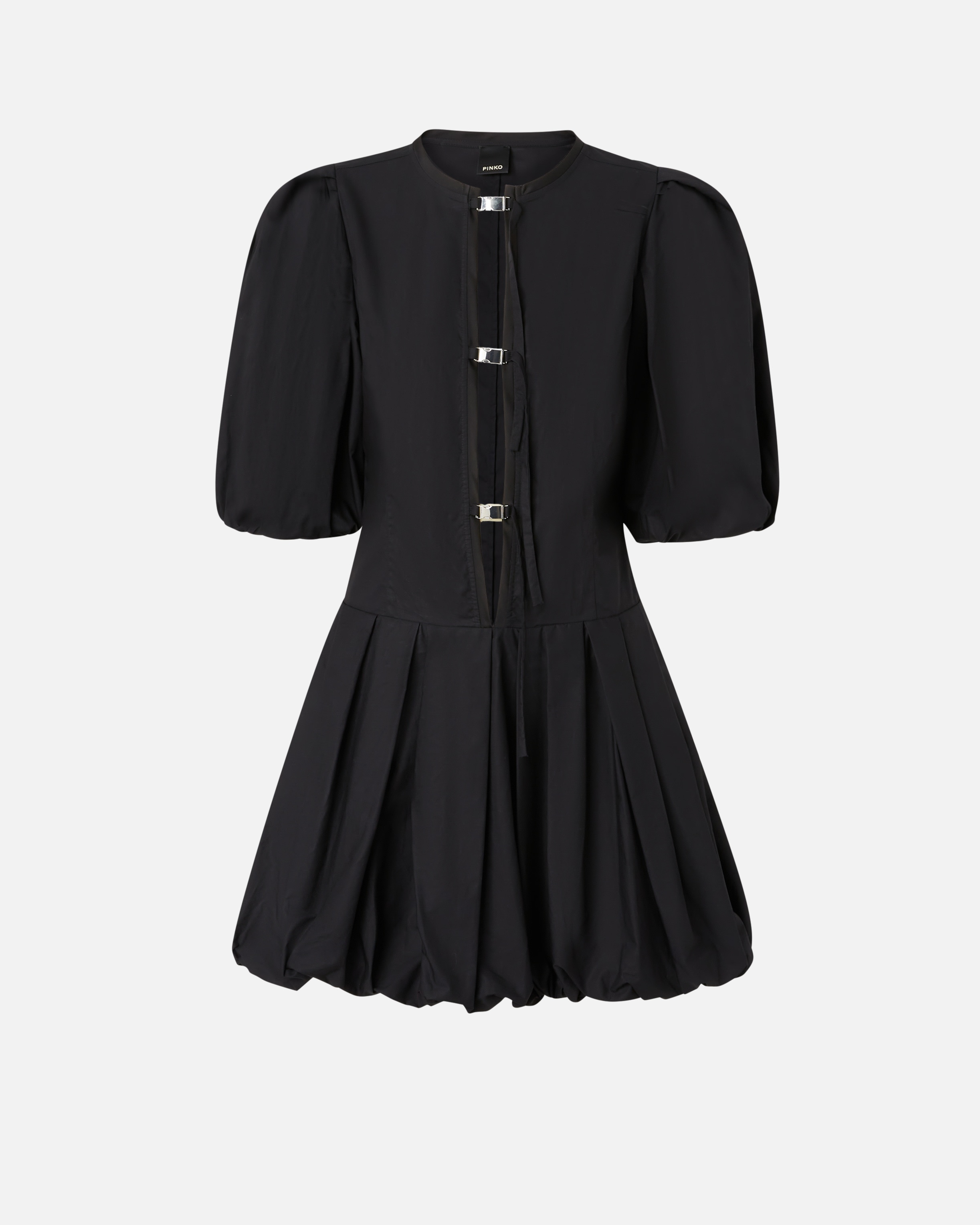 OLIVER DRESS − 105212A2LDZ99 Women's short dress made of pure cotton poplin characterized by half sleeves and balloon miniskirt, which create a unique and particular play of volumes. The front of this versatile mini dress is also customized with a feminine opening with adjustable straps with metal snap closure, of sporty inspiration. The dress has a fitted fit up to the hips and flared towards the bottom, for a fit and flare silhouette that creates a feminine and refined style even for small spring special occasions. COMPOSITION 1° Outside Fabric: COTTON 100% - 2° Outside Fabric: POLYESTER 100% - Lining: COTTON 100%