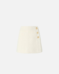 105792A2VJ-Z05 A-line miniskirt made from cotton and wool-blend boucle fabric. The piece features a straight hem, a darted back to improve the fit and a wrap fastening embellished with three metal buttons decorated with stars. Perfect paired with the trucker jacket in the same material or with a fitted top. COMPOSITION : POLYESTER 48% COTTON 31% ACRYLIC 13% Metallic 4% WOOL 4% - : POLYESTER 100% - Accessory: COTTON 50% VISCOSE 50% MEASURES W: 0.3 g