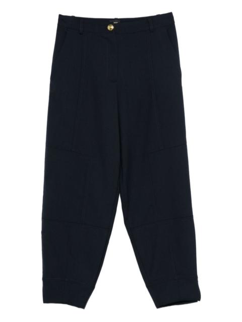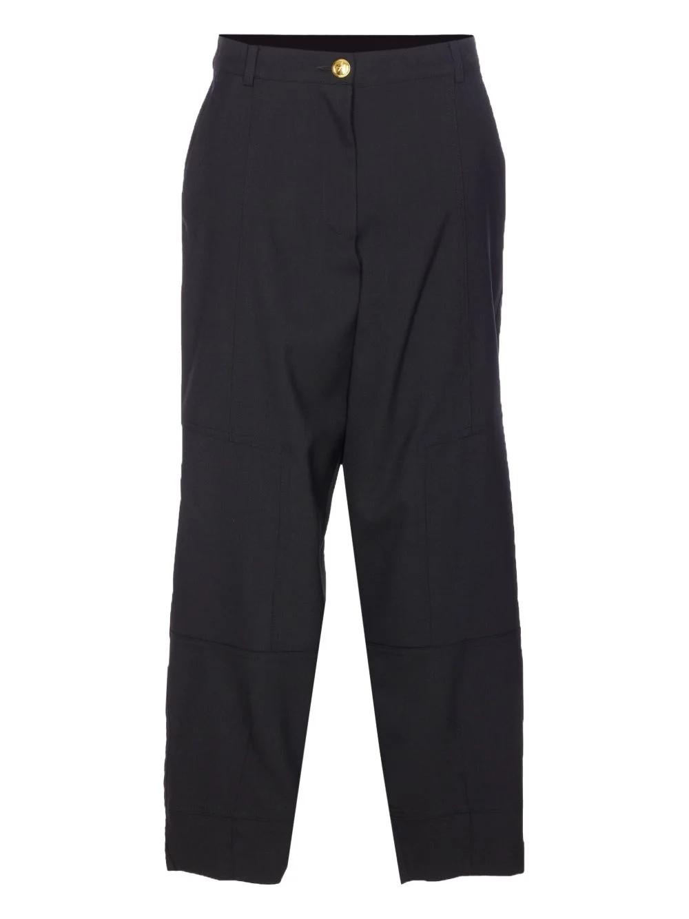 button-fastening trousers Highlights - Black - Logo button - Zip fastening - Lateral pockets - Regular Made in Italy Composition Polyester 55%, Wool 44%, Elastane 1% Washing instructions Read Manufacturer Guidelines