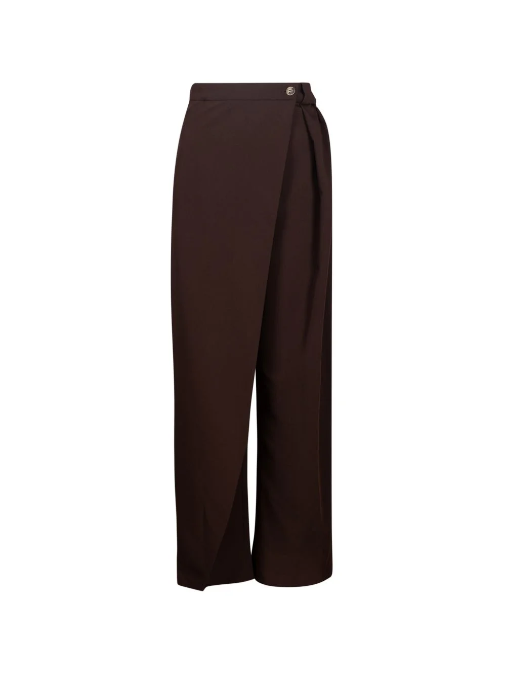 button trousers Highlights - Brown - Asymmetric construction - Button closure - Wide leg - Belt loops - Side seam pockets Imported Composition Fabric 100% Washing instructions Read Manufacturer Guidelines