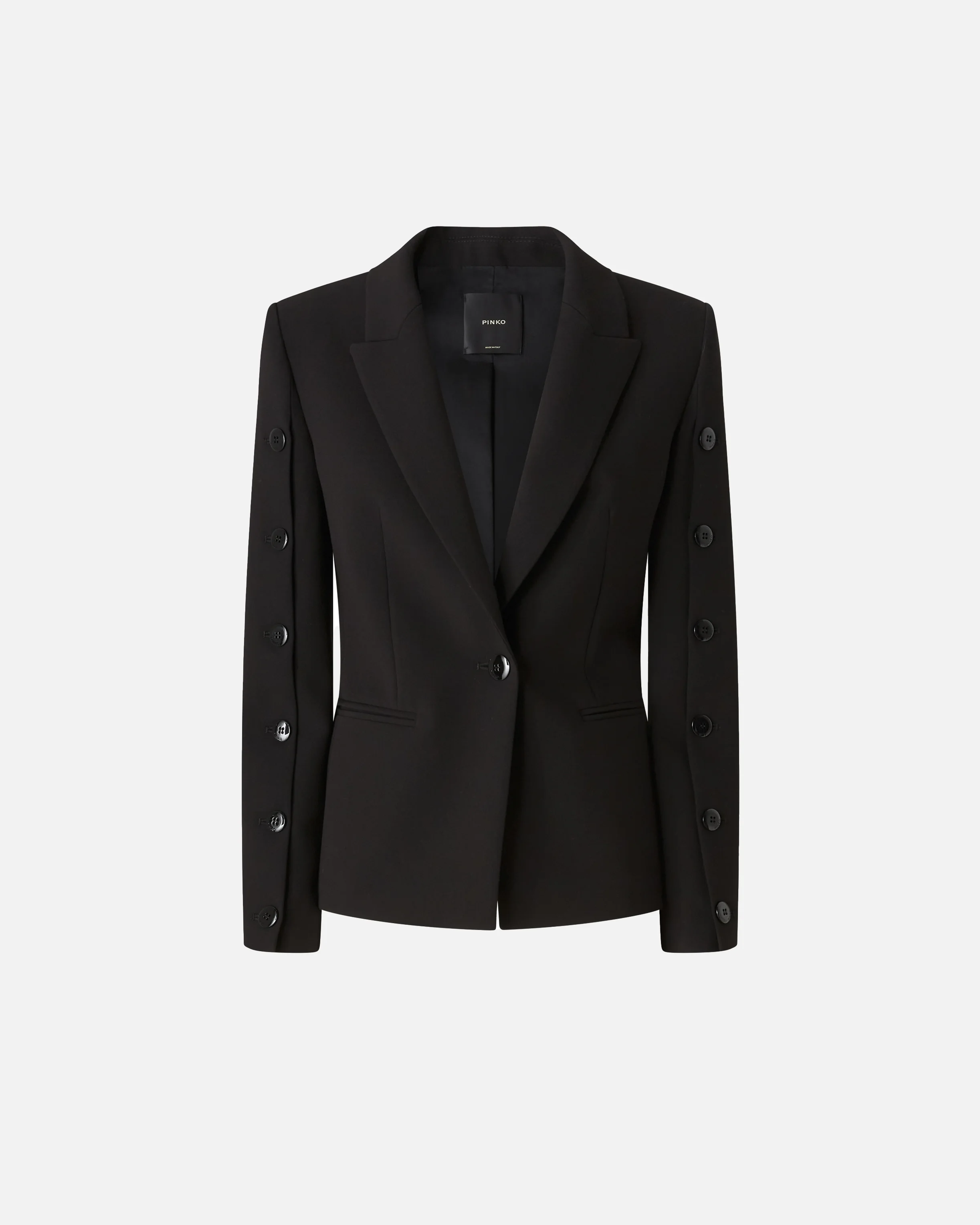 GARUTA JACKET − 105679A2R9Z99 Single-breasted cinched-waist jacket with sleeves that button open to create a cape-style effect. The technical viscose fabric manages to combine softness and fluidity to create a sophisticated texture that offers optimal comfort and fit, without losing the structured appearance of the design. Understated and refined, this style is the missing piece from your daytime looks and more. COMPOSITION Outside Fabric: POLYESTER 70% VISCOSE 23% ELASTANE 7% - Lining: ACETATE 70% POLYESTER 30%