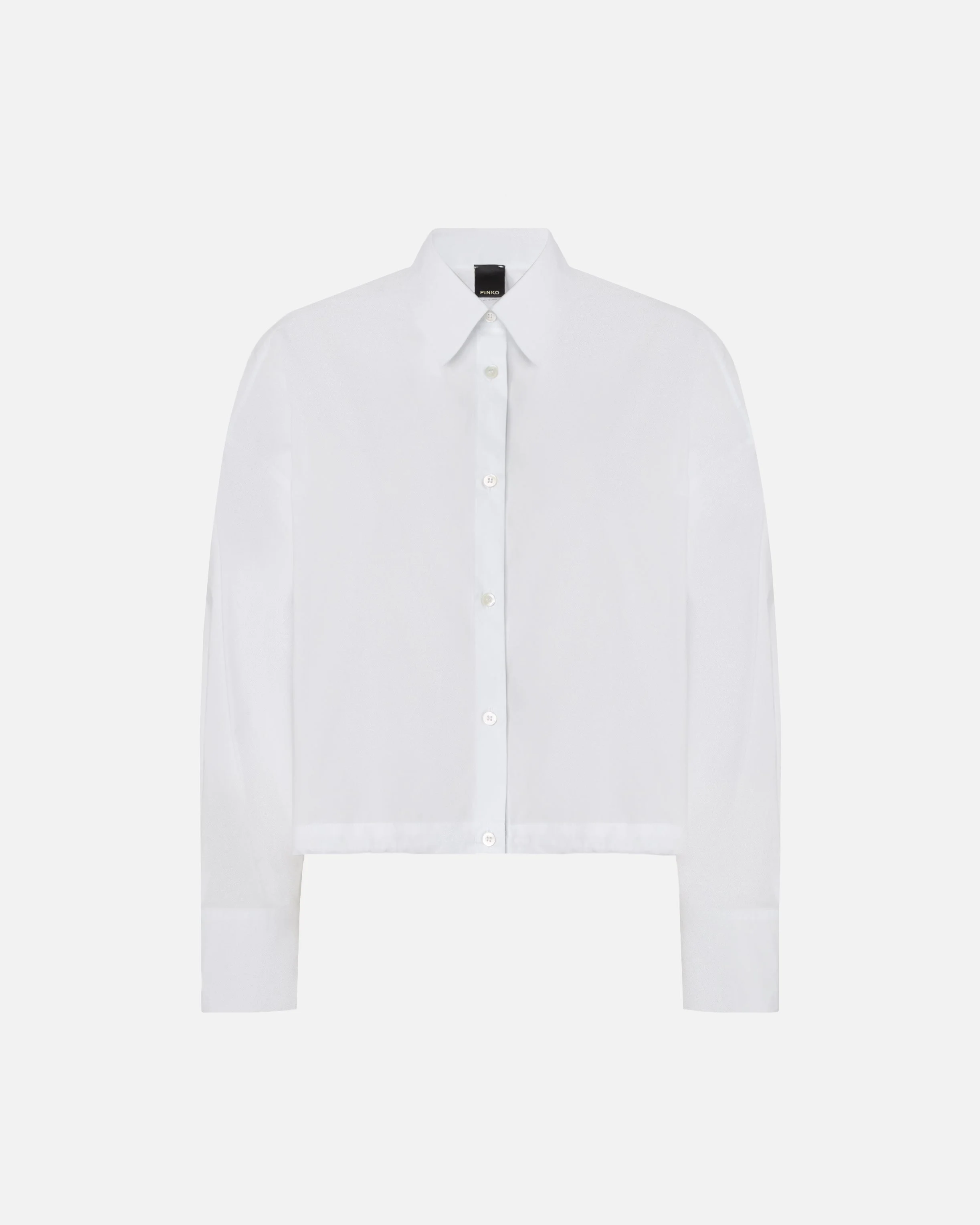 106249A32L-Z04 Cropped shirt in pure cotton poplin with vertical stripes, customised with the PINKO lettering logo inserted into the pattern for a subtle contrast. In addition to the characteristic elements of shirts such as a classic collar, long sleeves with cuffs and a back yoke, this model features a boxy cut with a loose and comfortable fit, accentuated by the elasticated hem. Thanks to its versatility and original touch, this garment is the ace up your sleeve you've been waiting for to complete your everyday looks: try it with a blazer and a pair of high-waisted trousers to create a fresh and contemporary office outfit. COMPOSITION Outside Fabric: COTTON 100% MEASURES W: 0.3 g
