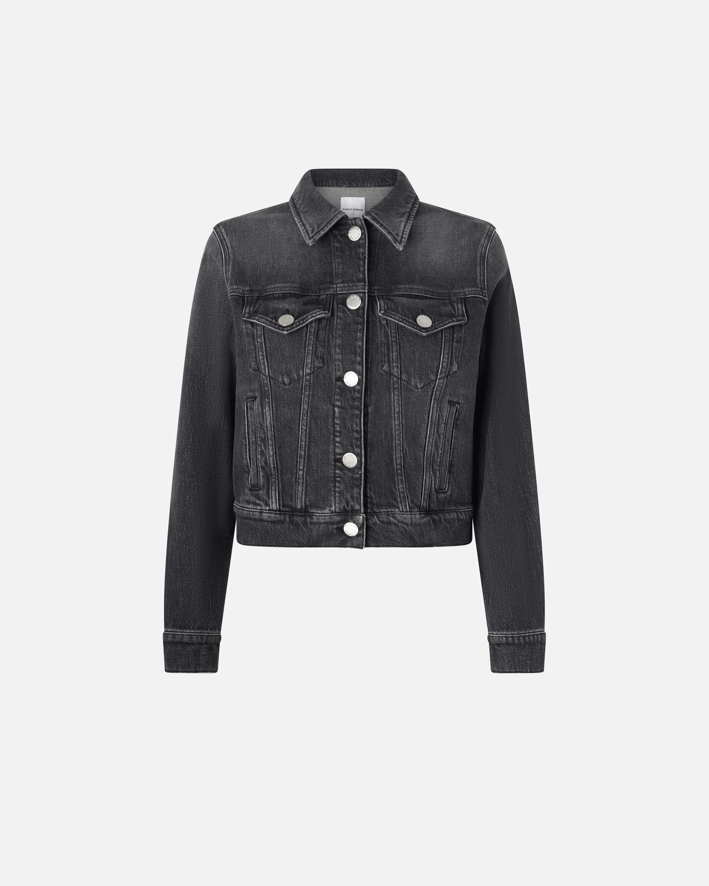 GONG JACKET − 103864A20UPJY Dark grey denim jacket, featuring a dark grey vintage wash. Small shirt collar, long sleeves with button at the bottom, patch pockets with pointed flap and vertical welt pockets on the hips. The garment features vertical stitching motifs, making the design iconic. Metal stud button fastening at the front. COMPOSITION Outside Fabric: COTTON 99% ELASTANE 1% - Lining: POLYESTER 65% COTTON 35%