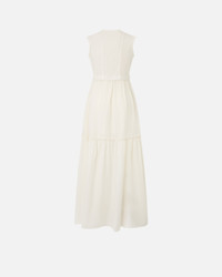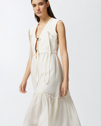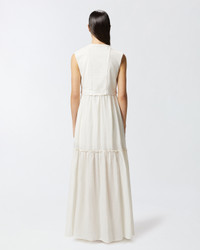 ANDRES DRESS − 105246A2MIC00 Women's sleeveless long dress made of lightweight cotton voile, a summery fabric that is cool on the skin, with a top designed as a utility-inspired vest in cotton canvas. The sleeveless line of this day dress is completed by patch pockets on the front vest, closed with a personalized zip with a long zip puller. The plunging front neckline is closed with snap hooks, while the long skirt constructed in ruffles features a button placket at the front. The cotton voile maxi dress easily creates a versatile and feminine look, to be shown off with a pair of moccasin mules, the trend of the season. COMPOSITION 1° Outside Fabric: COTTON 100% - 2° Outside Fabric: COTTON 100% - Lining: COTTON 100%