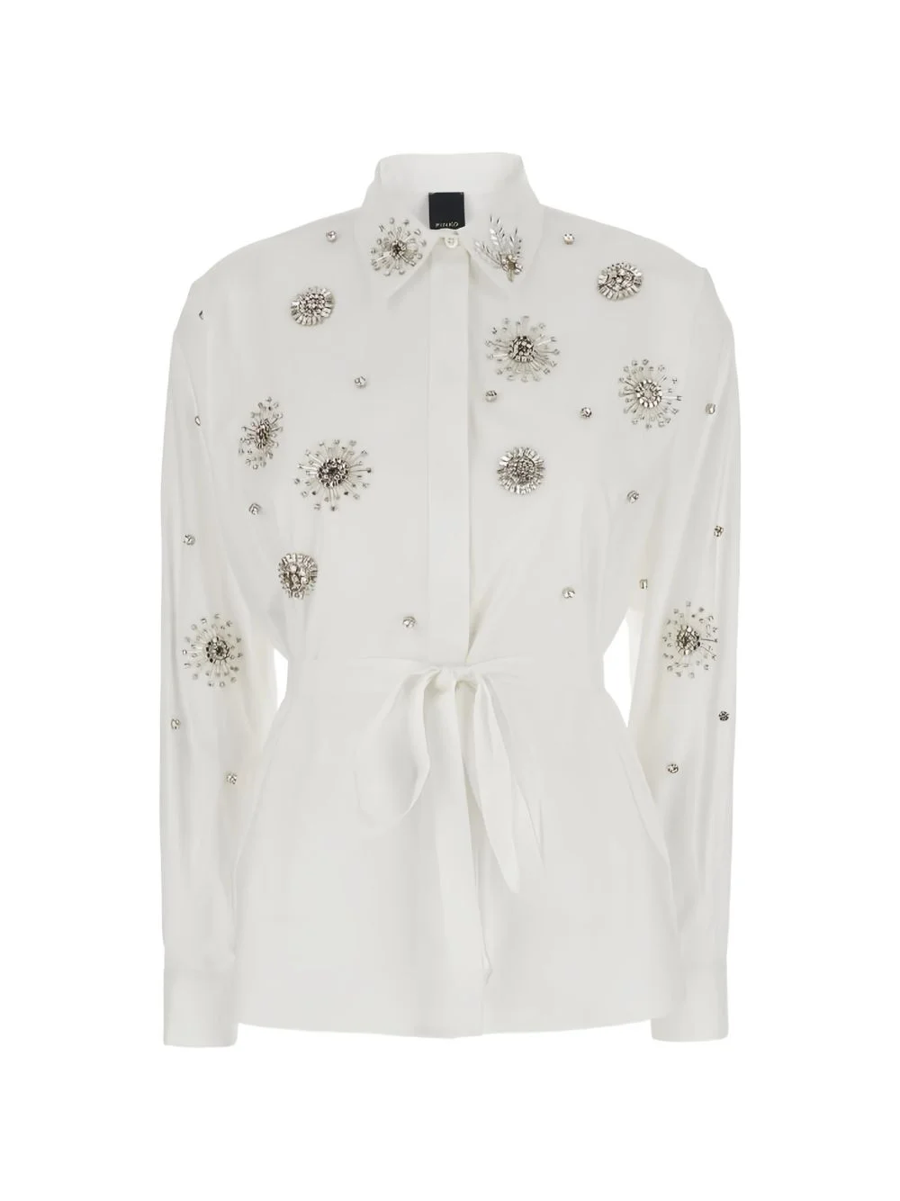 Carley embellished shirt Highlights - White - Embellished - Point-collar - Front button-fastening - Long-sleeves - Tie waist Imported Composition Cotton 100% Washing instructions Read Manufacturer Guidelines