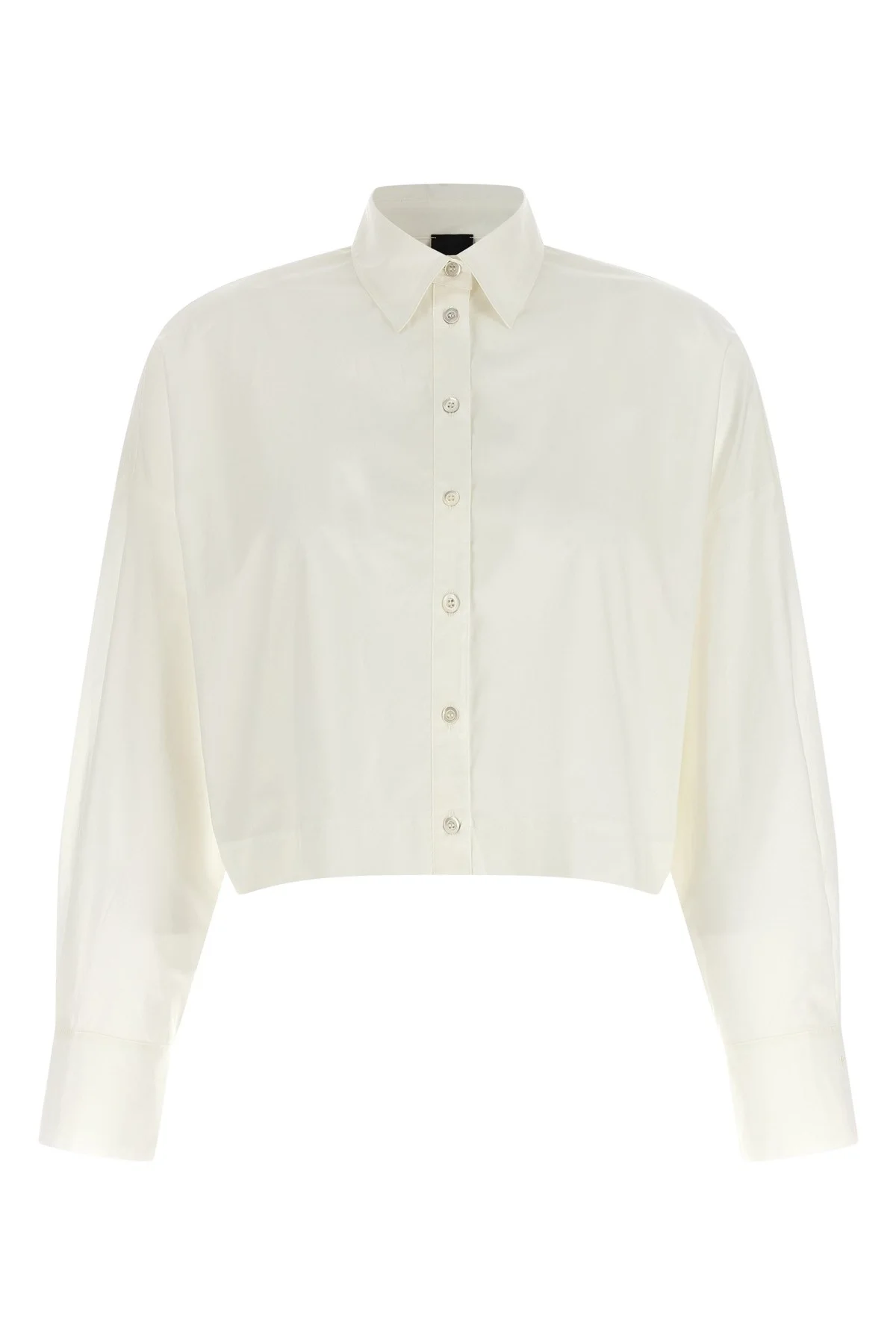 cod. 107005A2LDZ05 'Carne' crop shirt in cotton poplin with back curls, pointed collar, front mother-of-pearl button closure, long cuffed sleeves with tone-on-tone embroidered logo and dropped shoulders. Color: White Size & Fit: true to size fit Composition: 100% cotton Made in: Turkey
