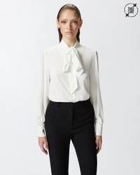 CASSAFORTE SHIRT − 104066A207Z00 Feminine shirt in lightweight silk-blend crepe de Chine fabric with round neck and neck sash that ties into a bow to give the look an original finishing touch. Long sleeves with cuff and placket with mother of pearl-effect buttons down the front. The main fabric is made with 69% viscose from responsibly managed forests. COMPOSITION Outside Fabric: ACETATE 69% SILK 31%