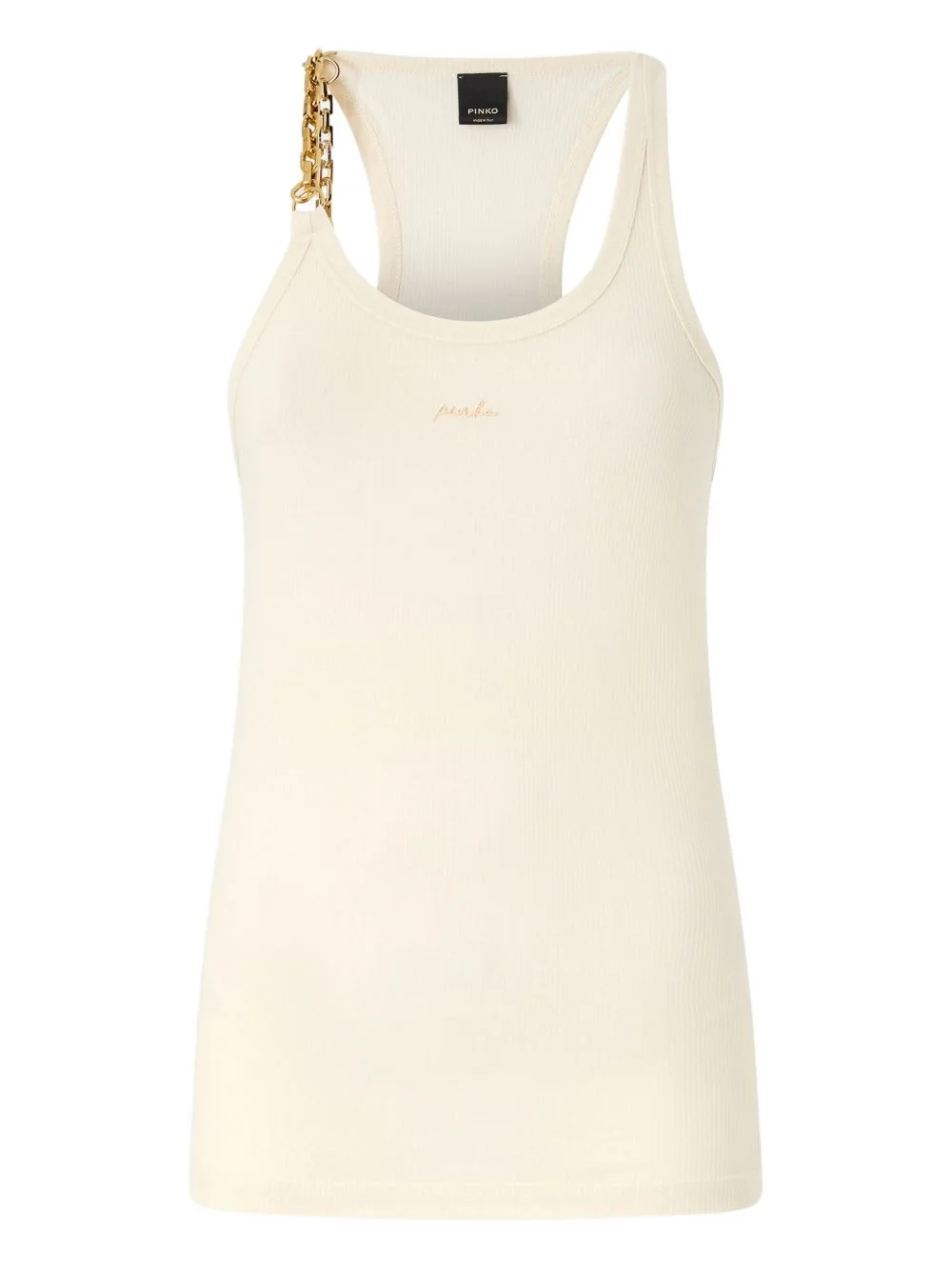 chain-strap ribbed tank top Highlights - Cream white - Ribbed knit - Chain-strap detail - Scoop neck - Sleeveless - Embroidered logo Made in Italy Composition Cotton 100% Washing instructions Hand Wash