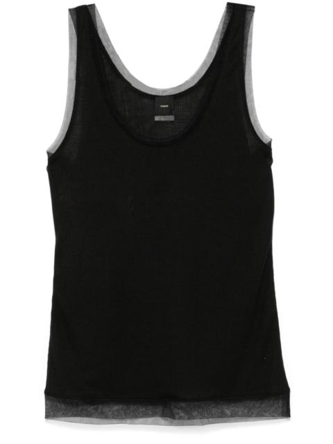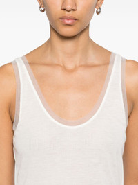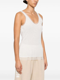 Clark tank top Highlights - White - Fine ribbed - Contrasting trim - Scoop neck Imported Composition Polyester 85%, Viscose 15% SIZE & FIT Model measurements Height 5 ft 10 in(1.77 m) Bust/Chest 31.88 in(81 cm) Hips 36.22 in(92 cm) Waist 24.01 in(61 cm) FittingInformation Designed for a slim fit that sits just away from the body offering a close yet comfortable fit Made from a lightweight non-stretch fabric, this piece offers minimal elasticity when worn