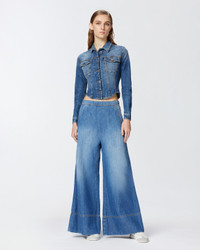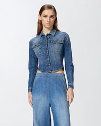 BENACHINO JACKET − 104972A2I5PJZ Short jacket in indigo comfort denim, in a medium dark wash, characterized by a fitted silhouette inspired by corsets, with vertical stitching and a rounded hem. The denim jacket is completed by a shirt collar, long sleeves and patch pockets with flap. Metal tack button closure on the front. This jacket is the perfect complement to a total denim look that stands out. COMPOSITION Outside Fabric: COTTON 98% ELASTANE 2% - Lining: POLYESTER 65% COTTON 35%