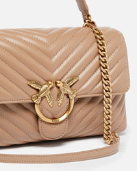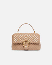 Classic Lady Love Bag Puff in quilted nappa leather with chevron pattern. The fastening is complete with the iconic metal Love Birds Diamond Cut buckle. The accessory boasts a microsuede-lined interior, complete with a zipped centre divider pocket and slip pocket. The shoulder strap combines the classic round metal chain with a practical, adjustable nappa leather pad. Activate your PINKO bag: verify the authenticity of your product and access a personalised experience by scanning the Love Birds embroidery on the back of the bag with your smartphone! COMPOSITION Lining: POLYAMMIDE 50% POLYAMIDE 50% POLYURETHANE 50% - Leather: COWHIDE 100% BOVINE SKIN 100% - Material: COWHIDE 100% BOVINE SKIN 100% MEASUREMENTS - Height: 17 cm - Width: 8 cm - Length: 26 cm