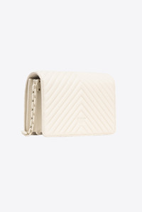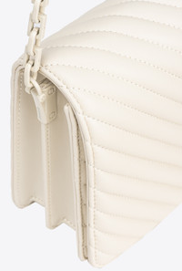 Classic Love Bag Click in quilted nappa leather with chevron design. The concealed press-stud fastening is embellished by the iconic, matching colour-electroplated metal Love Birds Diamond Cut buckle with cut-out effect. The accessory boasts a suede-look microfibre-lined interior, complete with a zipped centre divider pocket and slip pocket. The shoulder strap combines the square-link metal chain with a practical leather shoulder pad. Activate your PINKO bag: verify the authenticity of your product and access a personalised experience by scanning the Love Birds embroidery on the back of the bag with your smartphone! COMPOSITION Lining: POLYAMMIDE 50% POLYAMIDE 50% POLYURETHANE 50% - Leather: SHEEP LEATHER 100% SHEEPSKIN LEATHER 100% - Material: COWHIDE 100% BOVINE SKIN 100% - Material 1: POLYAMMIDE 60% POLYAMIDE 60% POLYURETHANE 40% MEASUREMENTS - Height: 16 cm - Width: 8 cm - Length: 25 cm