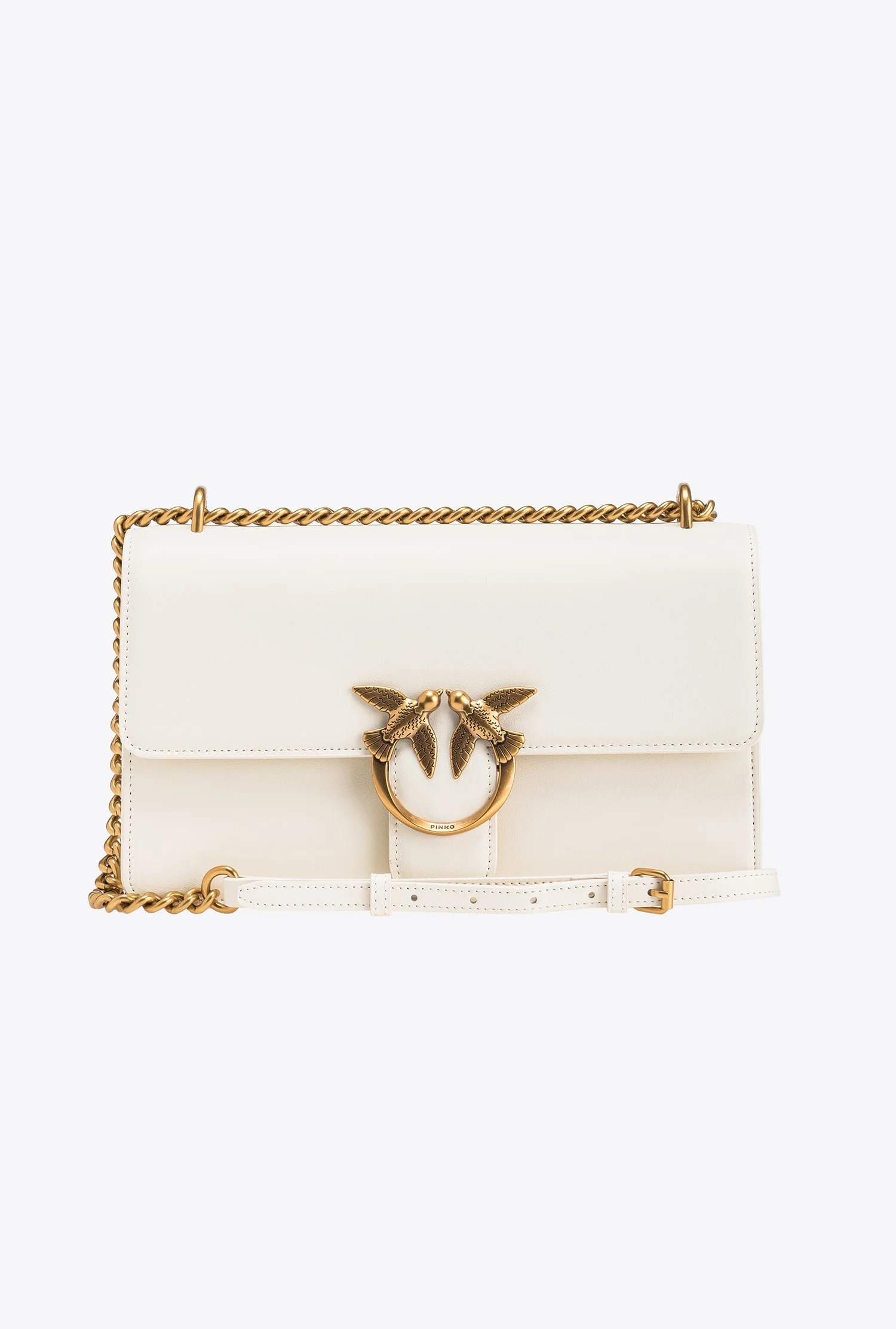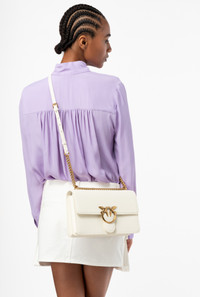 LOVE ONE CLASSIC DC − 100941A0F1Z14Q00001 Classic Love Bag One in soft, silky leather. The fastening is embellished with the iconic metal Love Birds Diamond Cut buckle. The accessory boasts a suede microfibre-lined interior, complete with a zipped centre divider pocket and leather slip pocket. The shoulder strap combines the classic round-link chain with a practical, adjustable leather shoulder pad. COMPOSITION Leather: COWHIDE 100% BOVINE SKIN 100% - Outside Fabric: POLYAMMIDE 50% POLYAMIDE 50% POLYURETHANE 50% - Lining: COTTON 100% MEASUREMENTS - Height: 17 cm - Width: 7 cm - Length: 27 cm