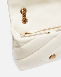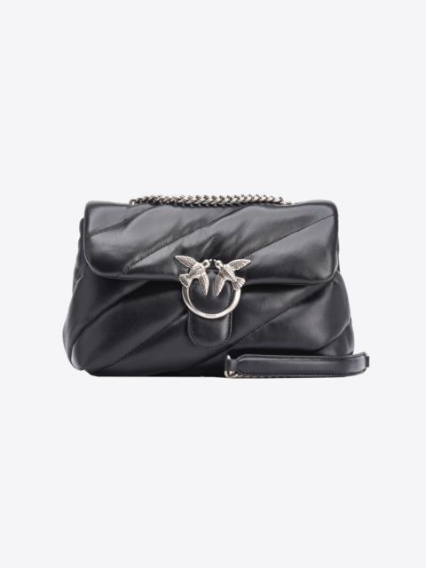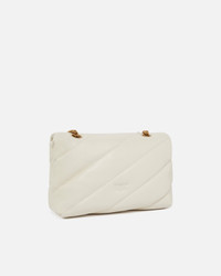 Classic Love Bag Puff in soft nappa leather featuring maxi slanted quilting. The fastening is complete with the iconic metal Love Birds Diamond Cut buckle. The accessory boasts a microsuede-lined interior, complete with a zipped centre divider pocket and slip pocket. The shoulder strap combines the classic round metal chain with a practical nappa leather shoulder pad. Activate your PINKO bag: verify the authenticity of your product and access a personalised experience by scanning the Love Birds embroidery on the back of the bag with your smartphone! COMPOSITION Lining: POLYAMMIDE 50% POLYAMIDE 50% POLYURETHANE 50% - Leather: SHEEP LEATHER 100% SHEEPSKIN LEATHER 100% - Accessory: Zinc 100% MEASUREMENTS - Height: 19 cm - Width: 11 cm - Length: 28 cm