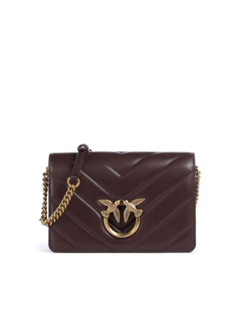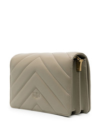 Classic Love leather shoulder bag PINKO's Classic Love shoulder bag is crafted from muted sage green leather to a quilted square silhouette that allows the iconic Love Birds plaque at the front to take centre stage. Highlights - Desert sage green - Calf leather - Quilted - Gold-tone hardware - Signature love birds buckle - Foldover top with magnetic fastening - Leather and chain-link shoulder strap - Partitioned compartment - Internal zip-fastening pocket - Internal slip pocket Made in Italy Composition Outer: Calf Leather 100% Lining: Calf Leather 100% SIZE & FIT Model measurements Height 5 ft 9 in(1.75 m) Bust/Chest 31.49 in(80 cm) Hips 34.05 in(86.5 cm) Waist 24.21 in(61.5 cm) Measurement DEPTH 3.14 in(8 cm) HEIGHT 6.69 in(17 cm) STRAP 20.86 in(53 cm) WIDTH 9.84 in(25 cm)