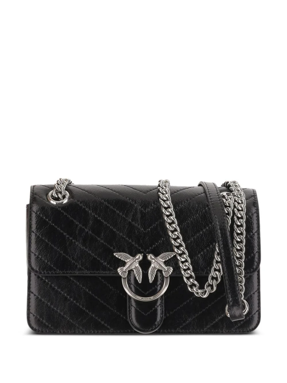 Classic Love quilted shoulder bag Highlights - Black - Chevron pattern - Flap closure - Magnetic fastening - Lovebirds buckle - Chain shoulder strap Imported Composition Outer: Calf Leather 100% Lining: Cotton 100% SIZE & FIT Measurement DEPTH 3.14 in(8 cm) HEIGHT 5.11 in(13 cm) WIDTH 8.26 in(21 cm)
