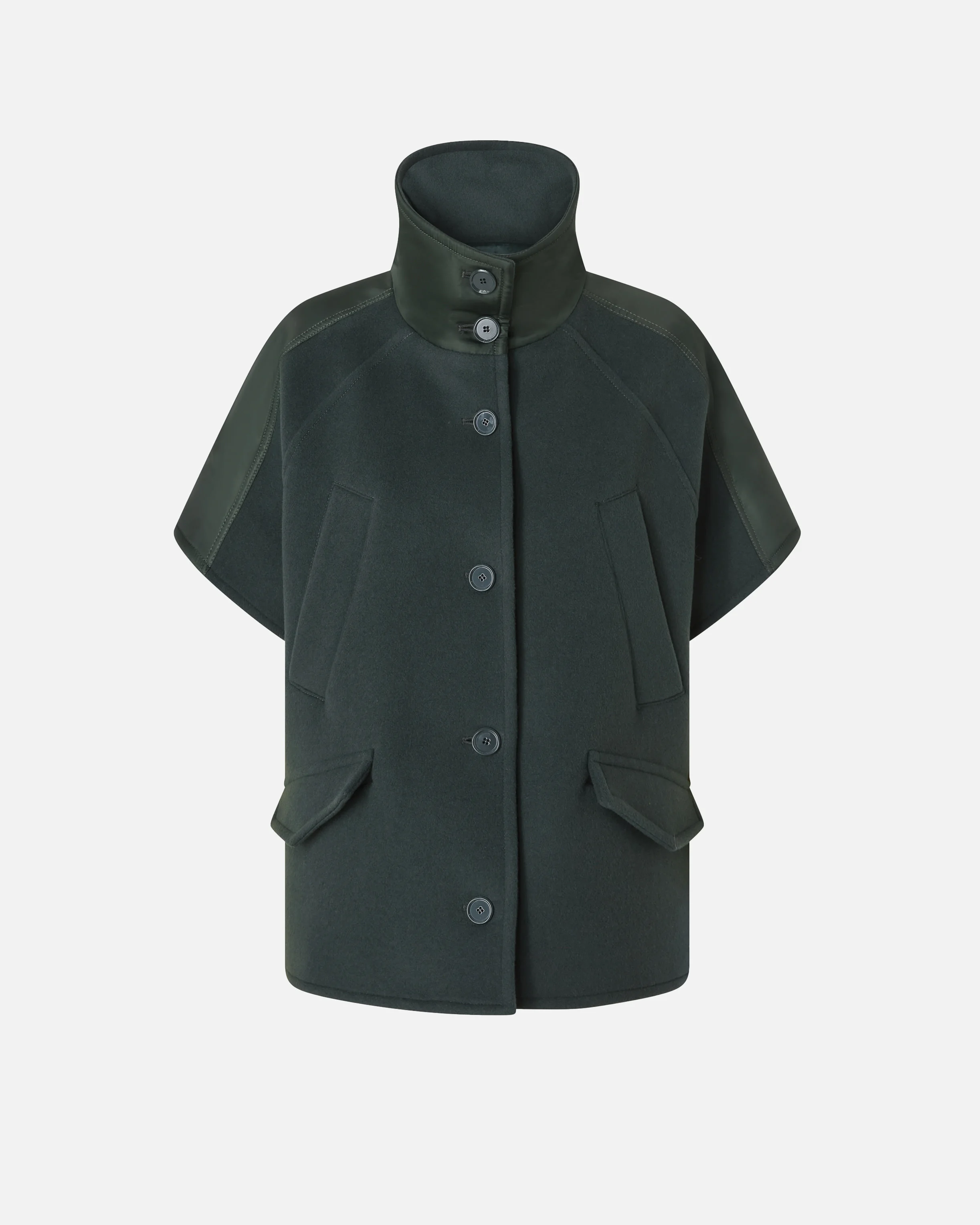 CARBONARA CAPPA − 105790A2SLX83 Short cape with short sleeves and double flap and welt pockets on the front. The style is made from warm, soft wool-blend cloth with a high neck, shoulders and yoke in technical satin. Front button fastening. Thanks to its original but functional design, this cape is ready to become your new favourite outerwear piece in pure PINKO style. COMPOSITION 1° Outside Fabric: WOOL 78% POLYAMIDE 22% POLYAMMIDE 22% - 2° Outside Fabric: POLYAMMIDE 100% POLYAMIDE 100% - Lining: ACETATE 67% POLYESTER 33% - Padding: POLYESTER 100%