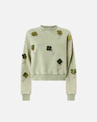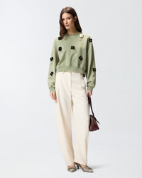 106302A34L-U84 Cropped sweatshirt made of pure cotton with ribbed hem, cuffs and crew neck. The style, with long sleeves and dropped shoulders, features slight fading on the worn areas, and is embellished with refined jewel flowers on the front composed of sparkly crystals and mirrored petals. An expression of PINKO's timeless creative flair, this sweatshirt is ideal for modern looks that combine functionality and glamour. - KIKOINE KNIT COMPOSITION 1° Outside Fabric: COTTON 100% - 2° Outside Fabric: COTTON 100% - : Glass 100% - : STEEL 100% - : POLYVINYL CHLORIDE 100% POLYVINYL FIBRE 100% MEASURES W: 0.53 g