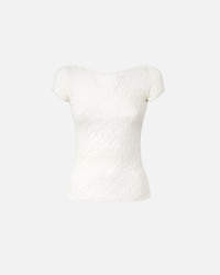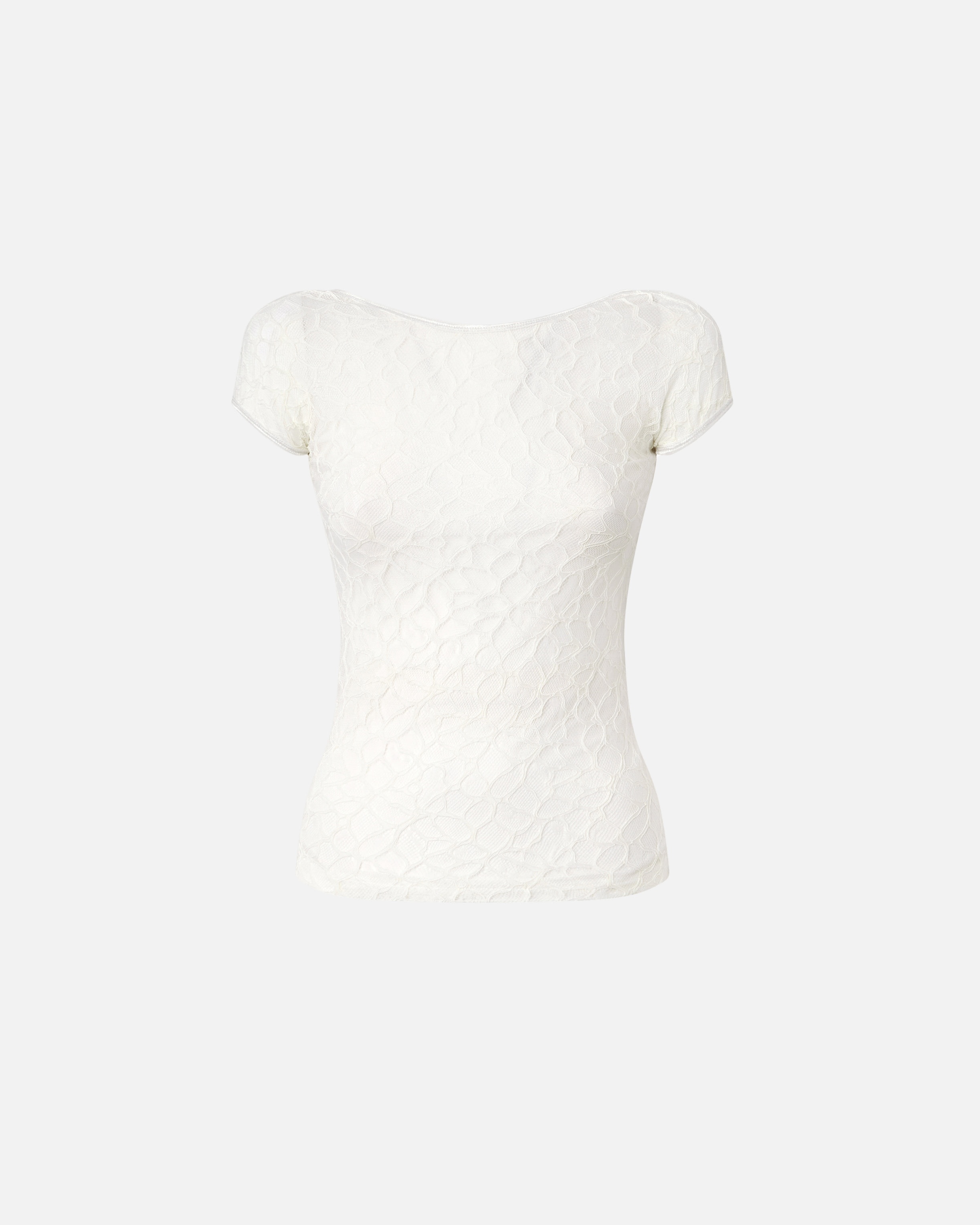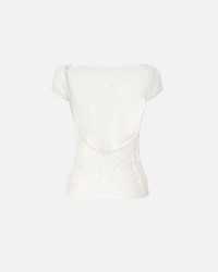 CODY SWEATER − 105228A2M5Z14 Women's short-sleeved sweater with a tight fit made of refined stretch lace with fabric lining. The lace sweater is completed by a boat neckline in front and a wide neckline in the back, where the back is left uncovered giving your look a super feminine look. The short-sleeved lace sweater completes your suit with a refined and original detail, to show off especially for ceremonies and special occasions in spring. COMPOSITION Outside Fabric: POLYAMMIDE 86% POLYAMIDE 86% ELASTANE 14% - Lining: POLYAMMIDE 100% POLYAMIDE 100%