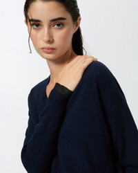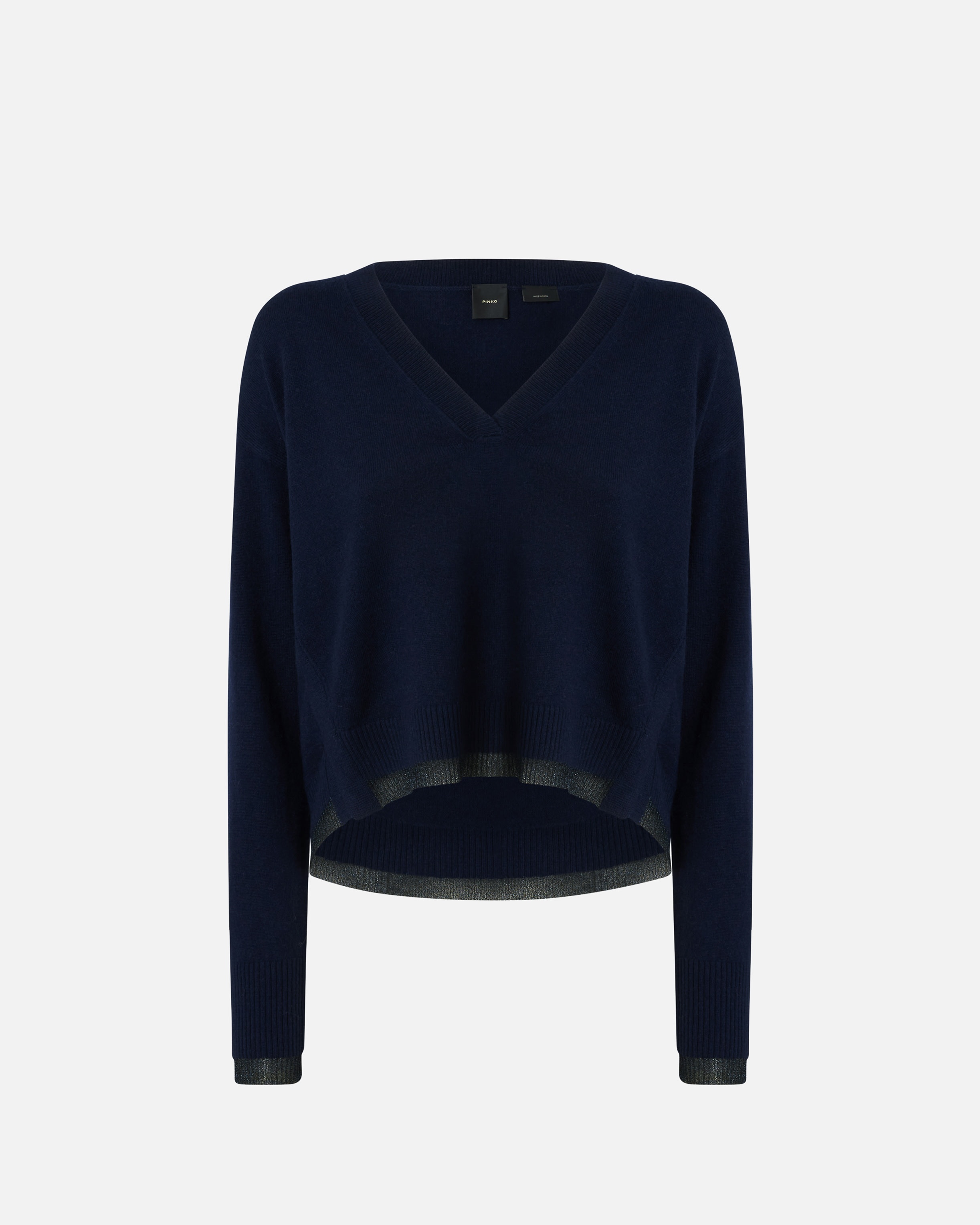 SPESSORE SWEATER − 104000A235G03 Long-sleeved pullover in soft, knit wool- and cashmere-blend fabric with contrasting hem with threaded lurex yarn. Boxy silhouette with ribbed V-neck, low set-in long sleeves and edging. COMPOSITION 1° Outside Fabric: WOOL 90% CASHMERE 10% - 2° Outside Fabric: POLYESTER 65% Metallic fibre 35% Metallised Fibre 35%