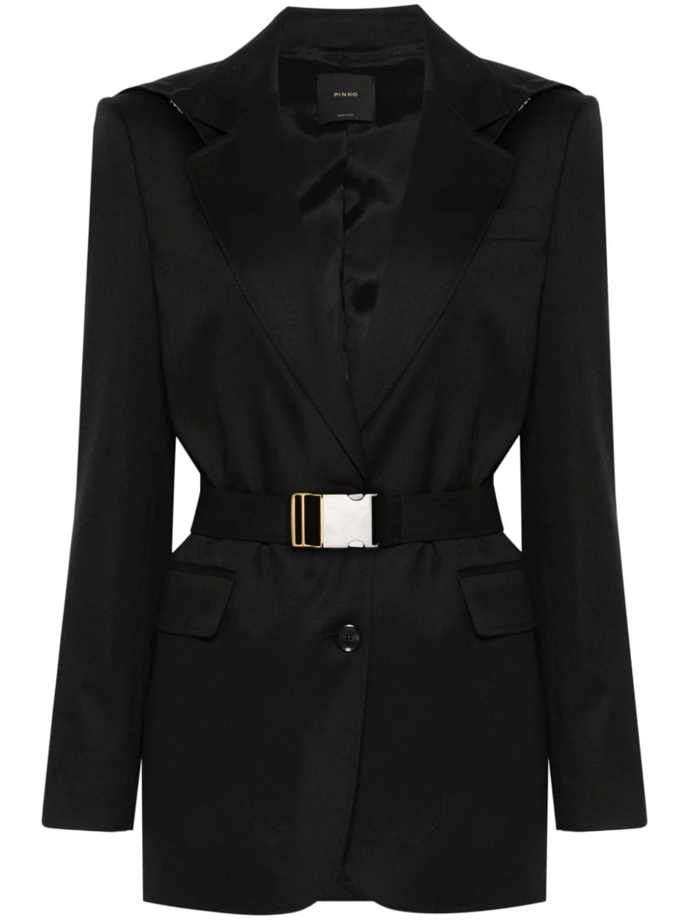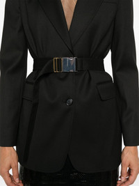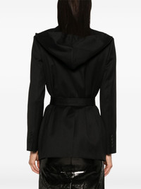 Cortez blazer Highlights - Black - Wool blend - Front button fastening - Detachable toggle hood - Notched lapels - Shoulder pads - Long sleeves - Buttoned cuffs - Chest welt pocket - Two front flap pockets - Belt loops - Detachable and adjustable waist belt - American rear vent - Full lining Made in Italy Composition Outer: Wool 55%, Polyester 28%, Viscose 15%, Spandex/Elastane 2% Lining: Acetate 67%, Polyester 33% SIZE & FIT Model measurements Height 5 ft 11 in(1.8 m) Bust/Chest 33.07 in(84 cm) Hips 37.4 in(95 cm) Waist 25.19 in(64 cm) FittingInformation Designed for a relaxed fit, this piece allows for comfort and movement when worn The internal shoulder pads offer a structured shape Made from a midweight fabric